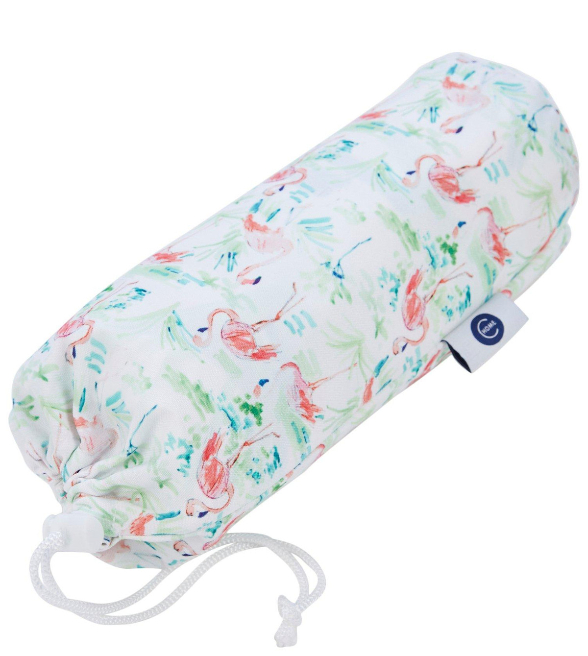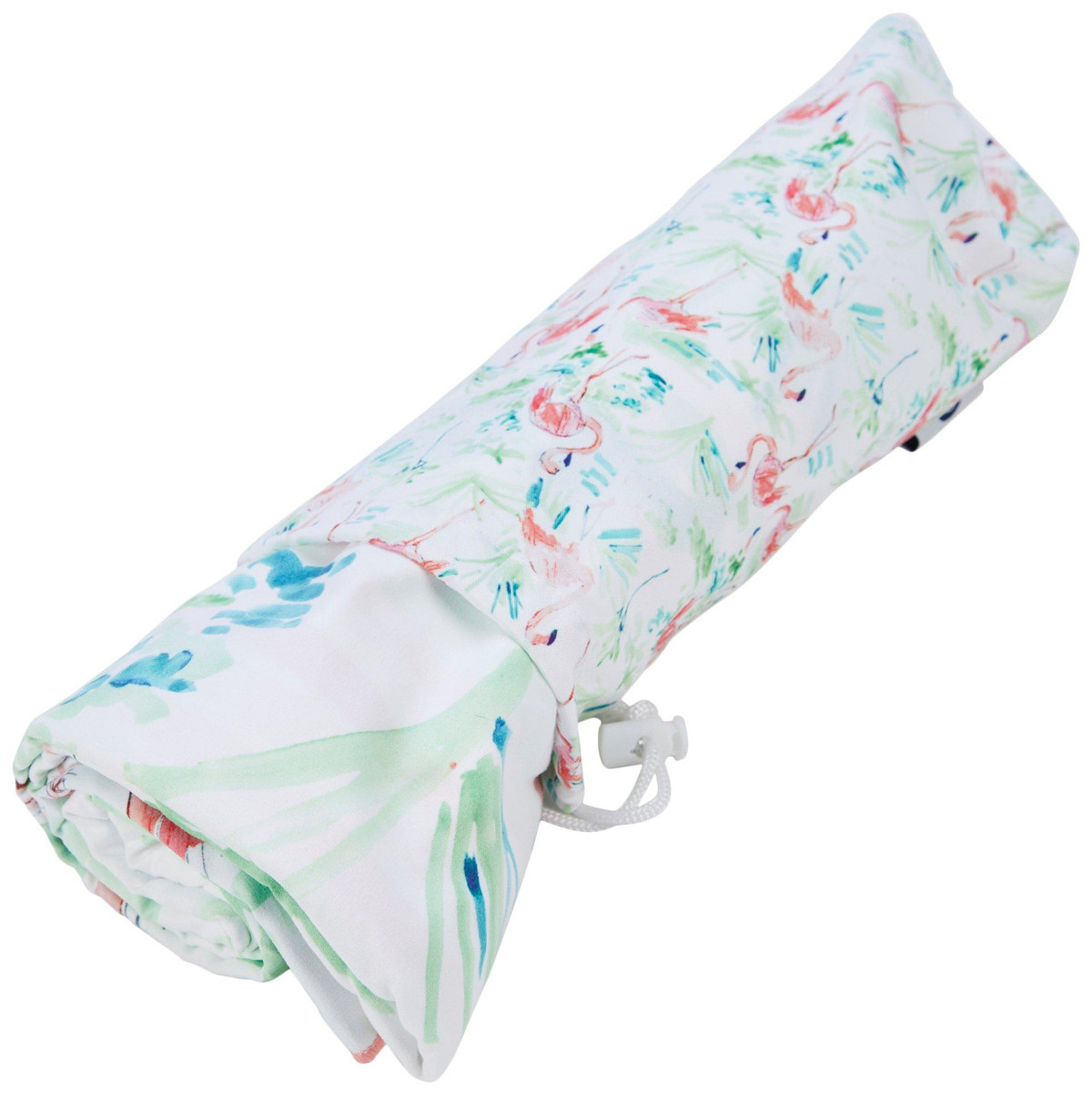 Make a splash with this vibrant 60” x 70” beach towel blanket featuring a Flamings front and colorful striped reverse. Soft, oversized, and perfect for lounging, it comes with a built-in case strap for easy fold and carryideal for beach days, poolside hangs, or picnics in the sun.