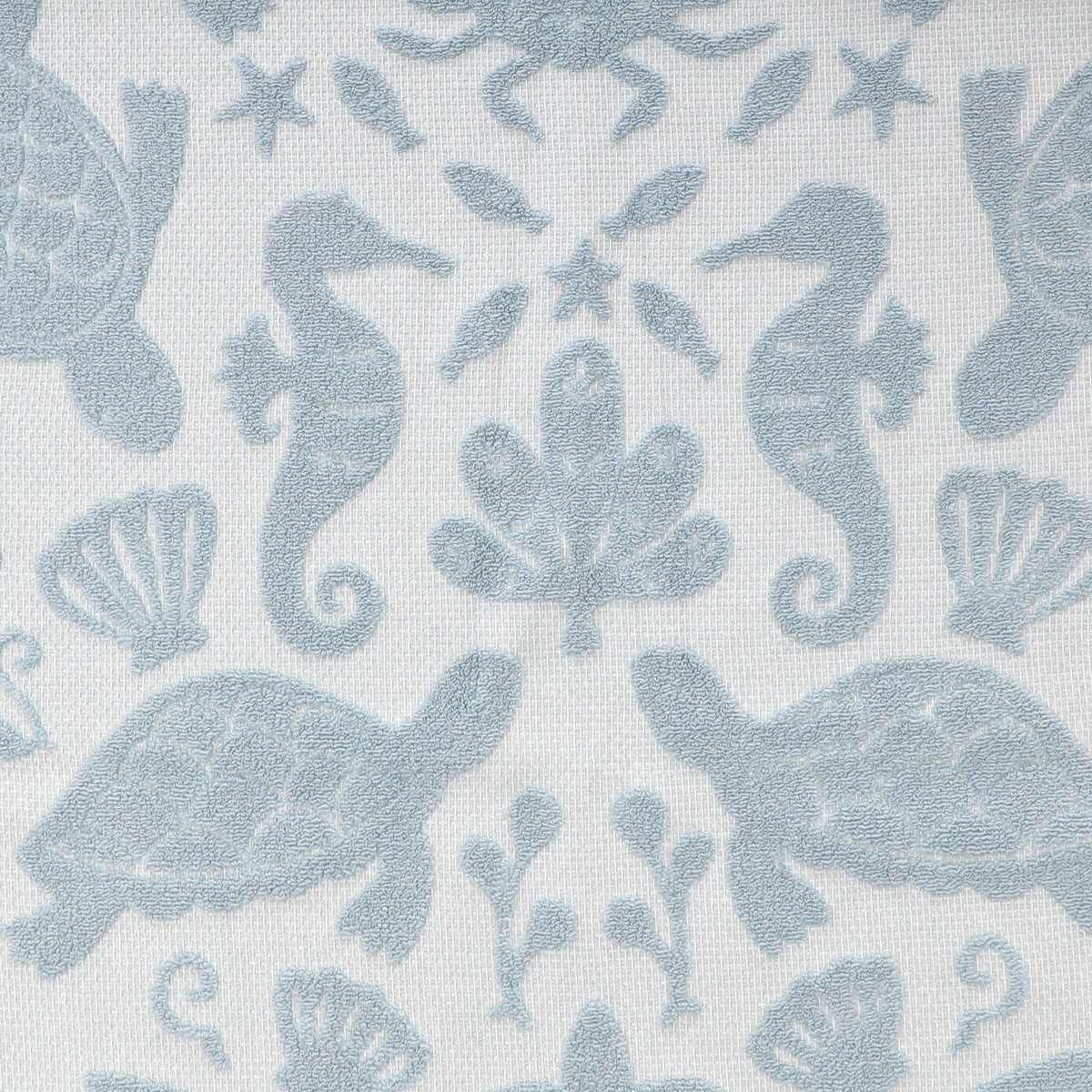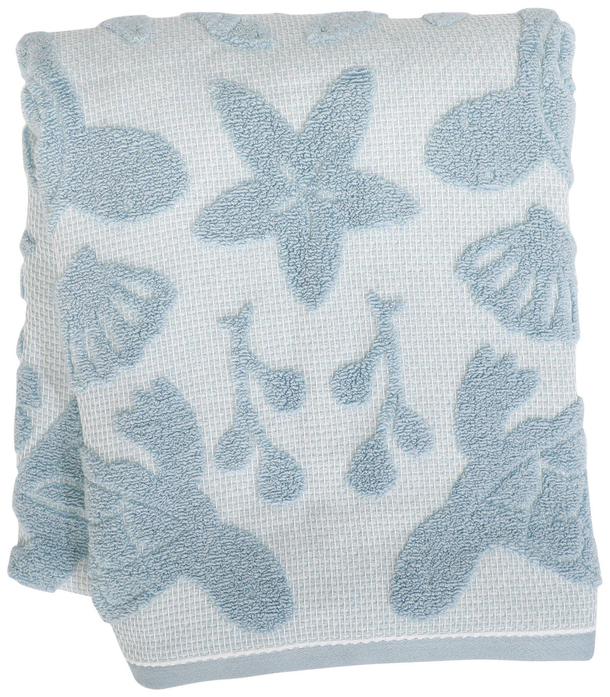 Bring a touch of coastal elegance to your home with this ultra soft bath towel featuring an embossed sea turtle pattern and matching border. Crafted from 100% premium cotton, they provide exceptional softness, absorbency, and long-lasting quality. Perfect for everyday use, they combine comfort with refined style. Fabrication is 100% cotton. Measures approximately 30 in x 54 in.