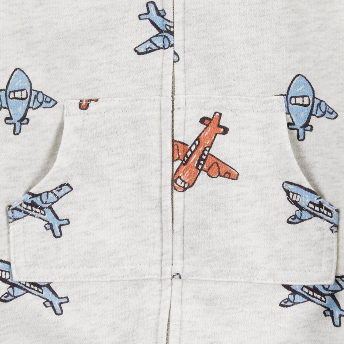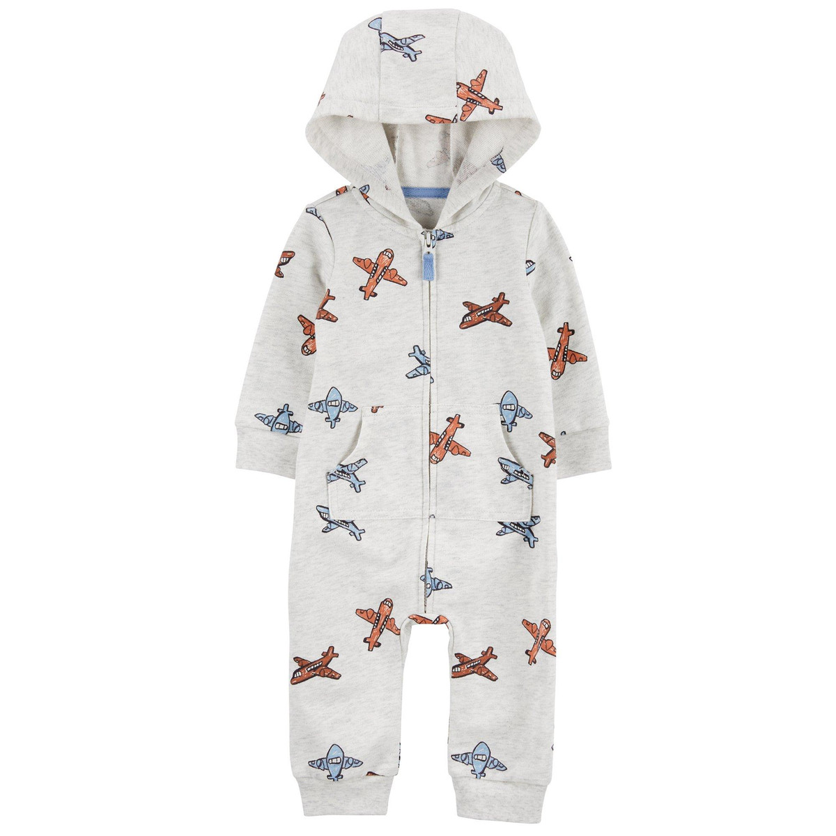 Crafted in a soft cotton blend with a zip up the front, this hooded jumpsuit was made for your airplane lover.