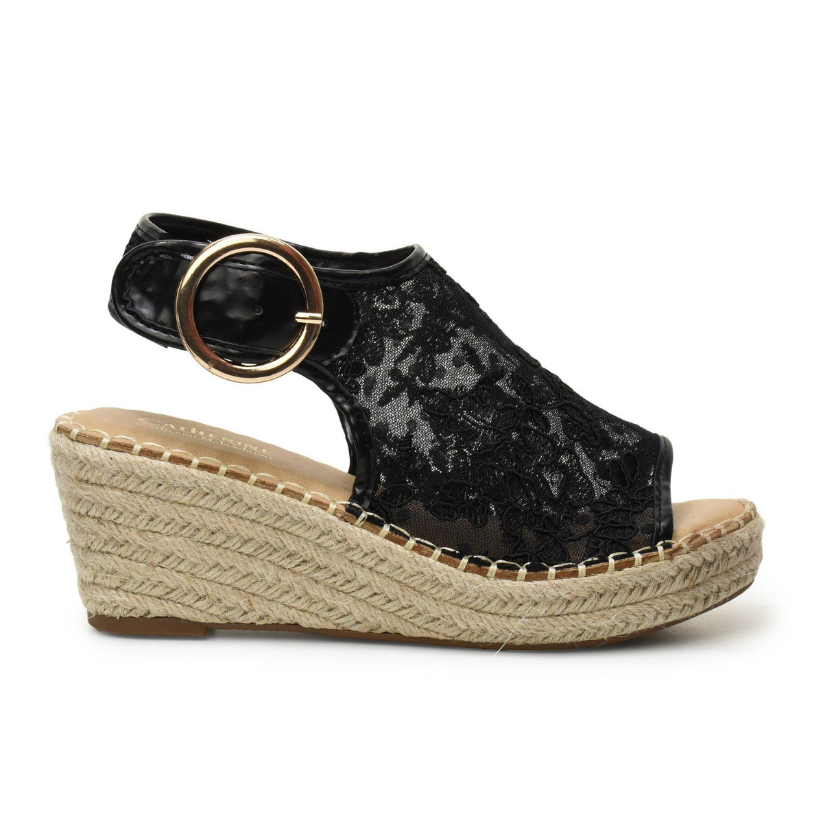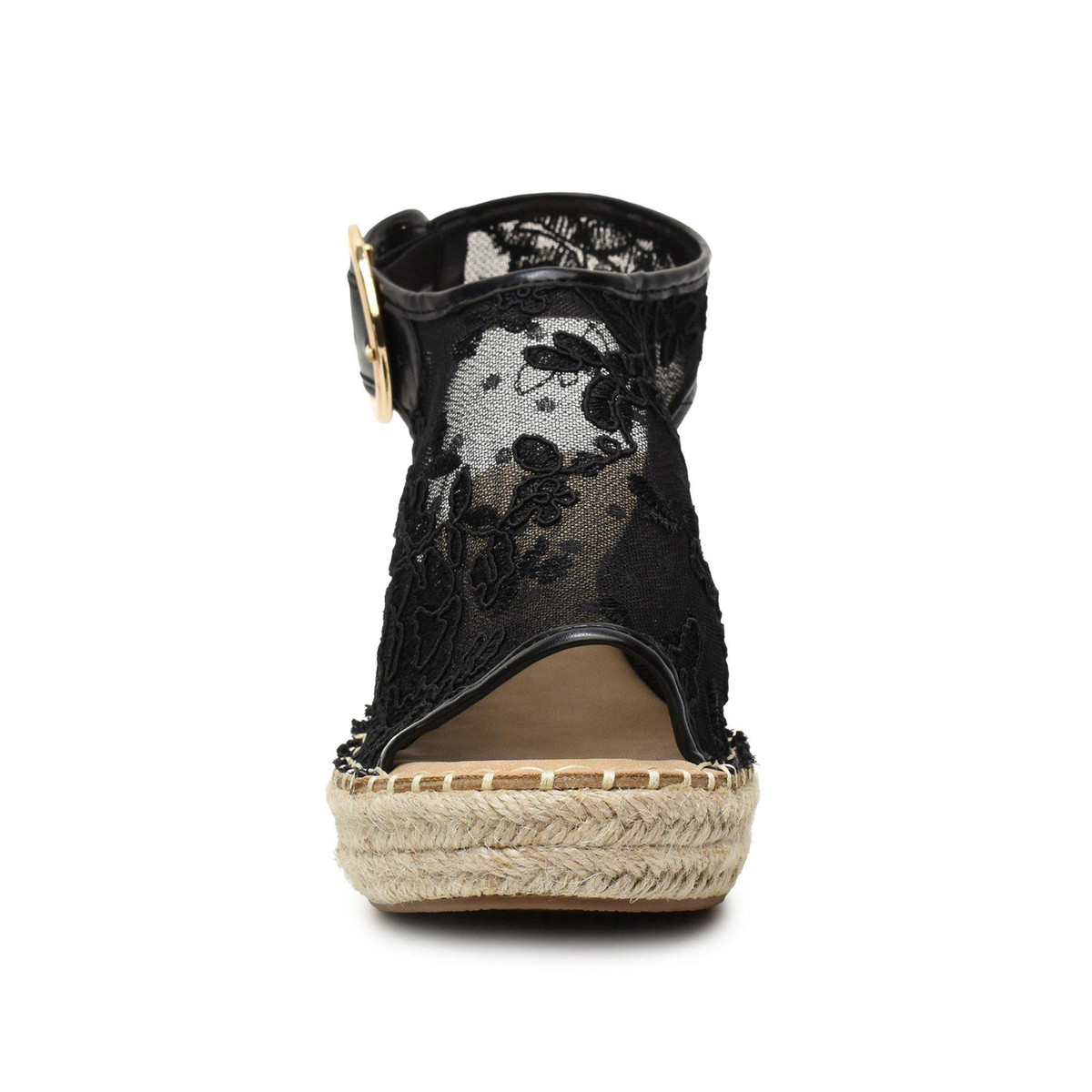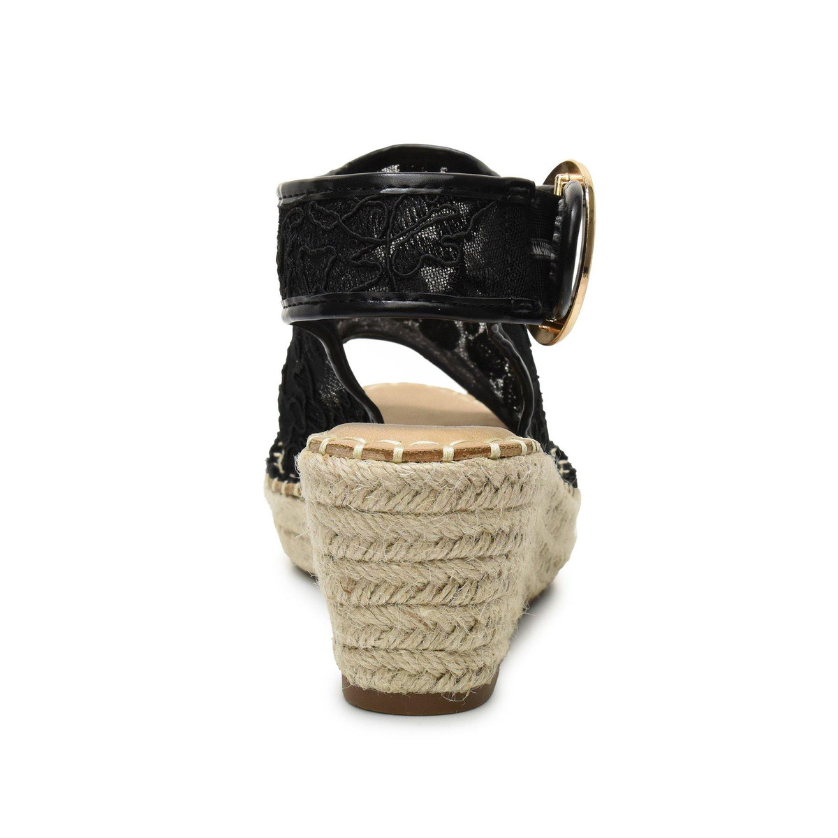 A gleaming buckle secures a comfortable fit on this breezy mesh sandal, designed with a cushioned footbed and wedge heel for all-day support on any adventure. Featuring a 3 inch heel, adjustable ankle strap with buckle closure and synthetic upper/textile lining/rubber sole.