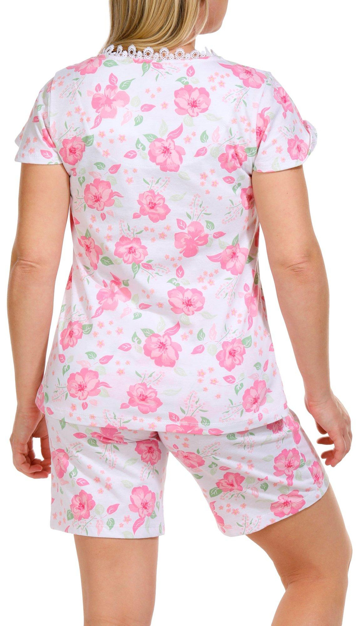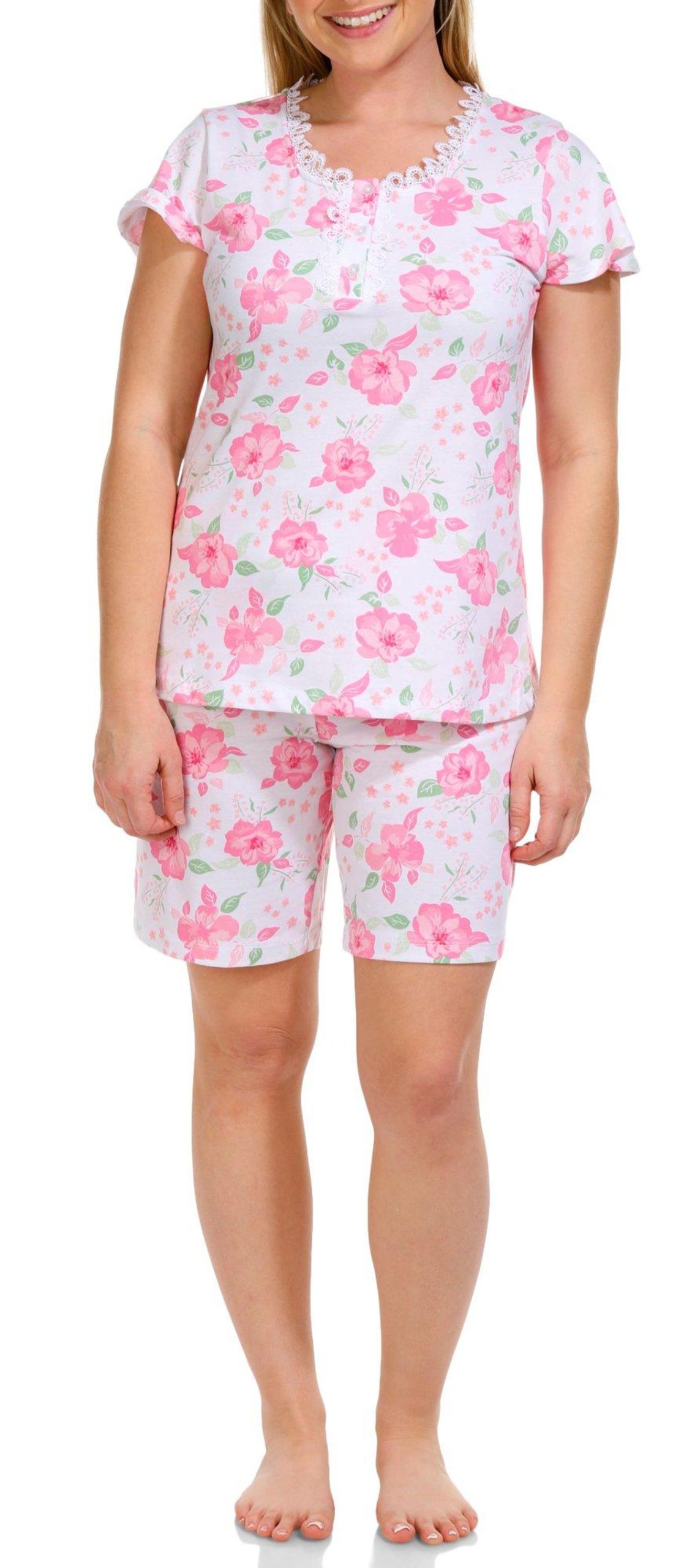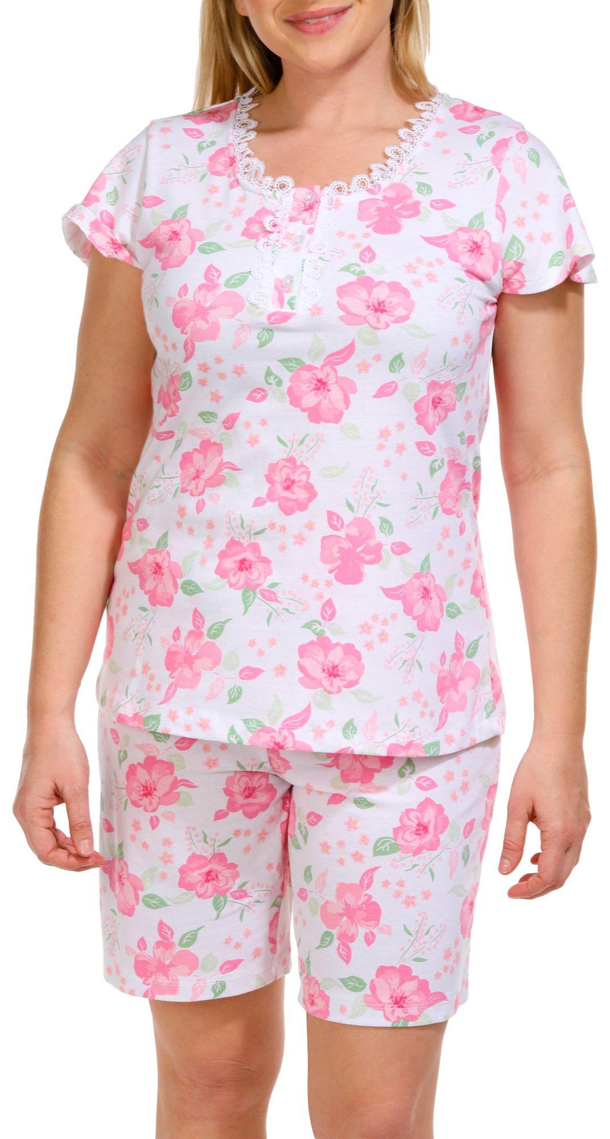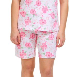 Introducing our Women’s 2 Pc Floral Pajama Shorts Set, crafted from a comfortable blend of cotton and polyester. This stylish set features a short sleeve top and matching shorts, both adorned with a charming floral print. Perfect for warm nights or lounging at home, this pajama set combines elegance and comfort effortlessly.