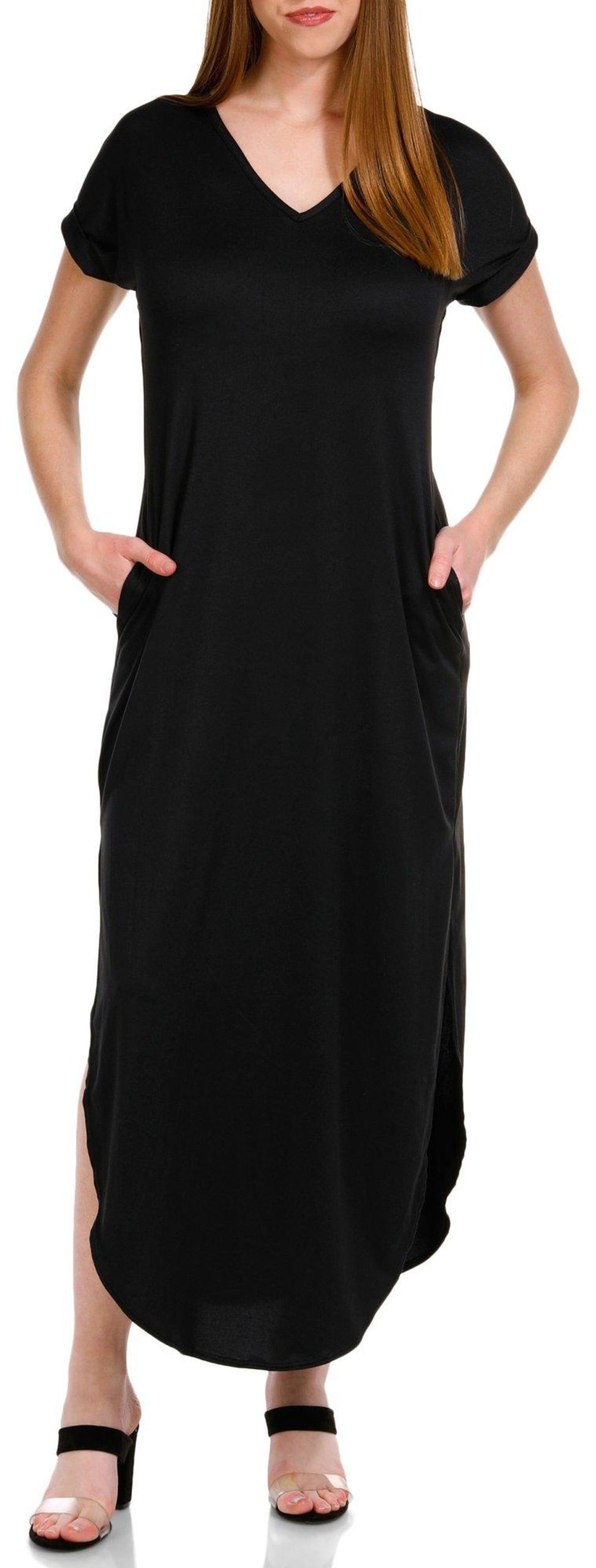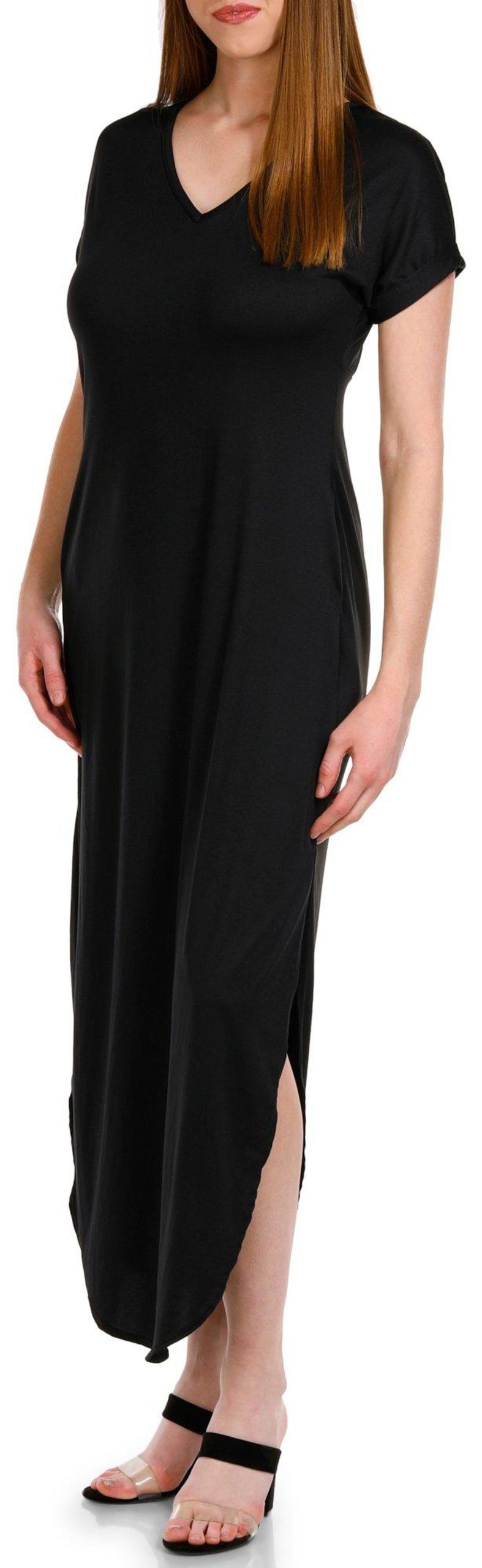 Stay stylish in our Womens Short Sleeve Yummy Maxi Dress! Made of a comfortable blend of polyester, rayon and spandex, this maxi dress features a stylish solid color, short sleeves, a v-neckline and tie front hem. Great for casual outings.