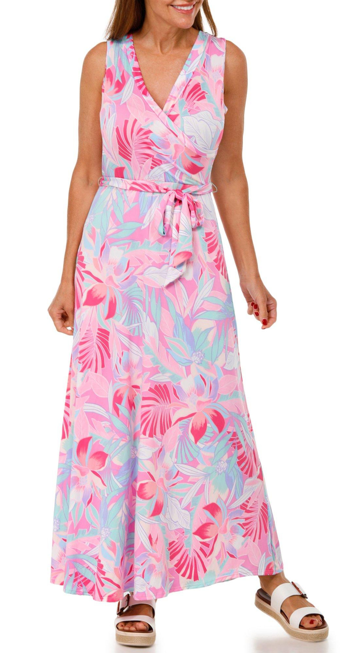 C'est La Vie Women's Sleeveless Wrap Botanical Maxi Dress