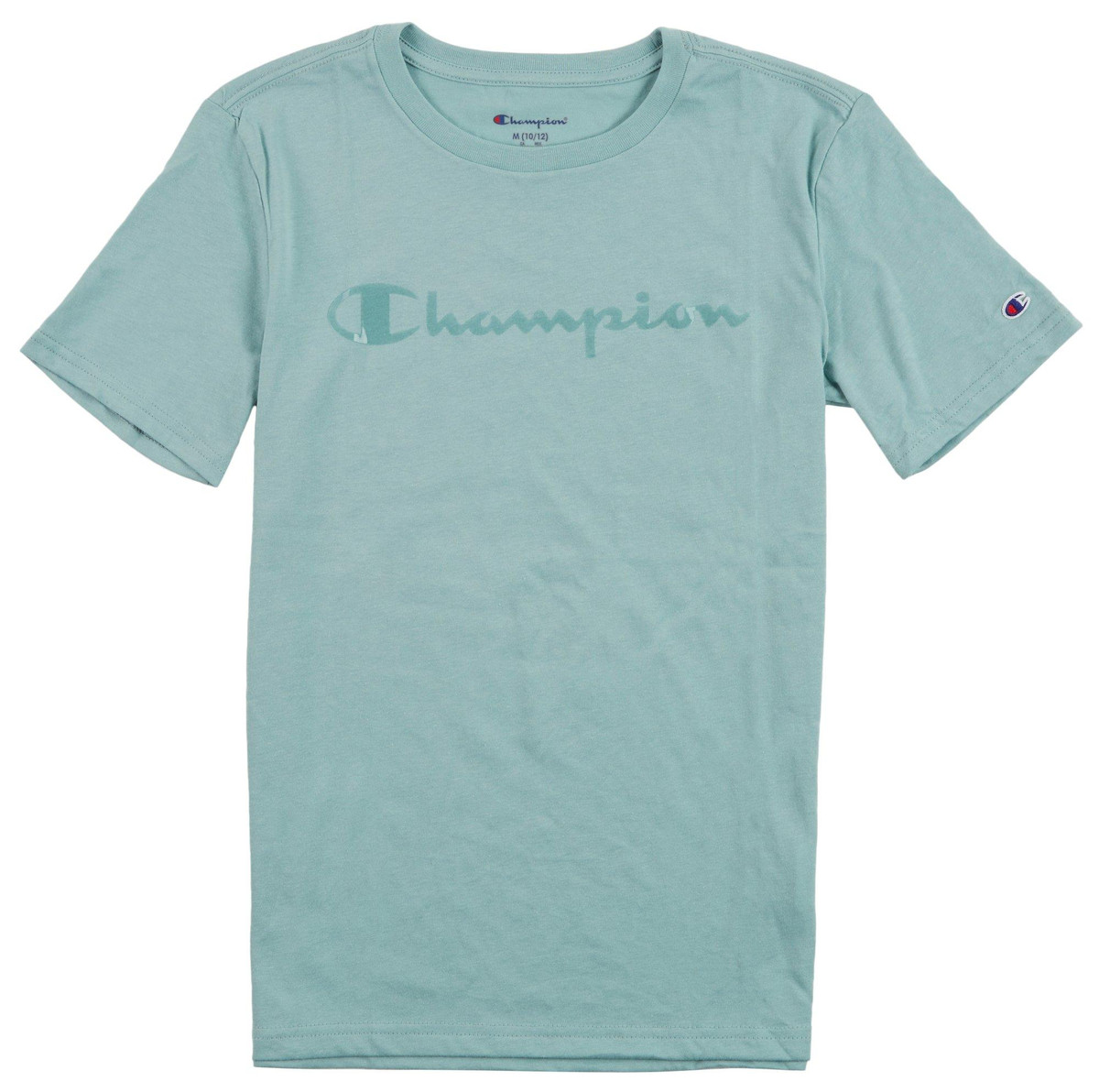 This Champion boys’ T-shirt features a classic crew neck design with a bold logo screen print on the chest. Made from a soft cotton-polyester blend, it offers comfort and durability for everyday wear. With short sleeves and a relaxed fit, it’s perfect for active play or casual outings.