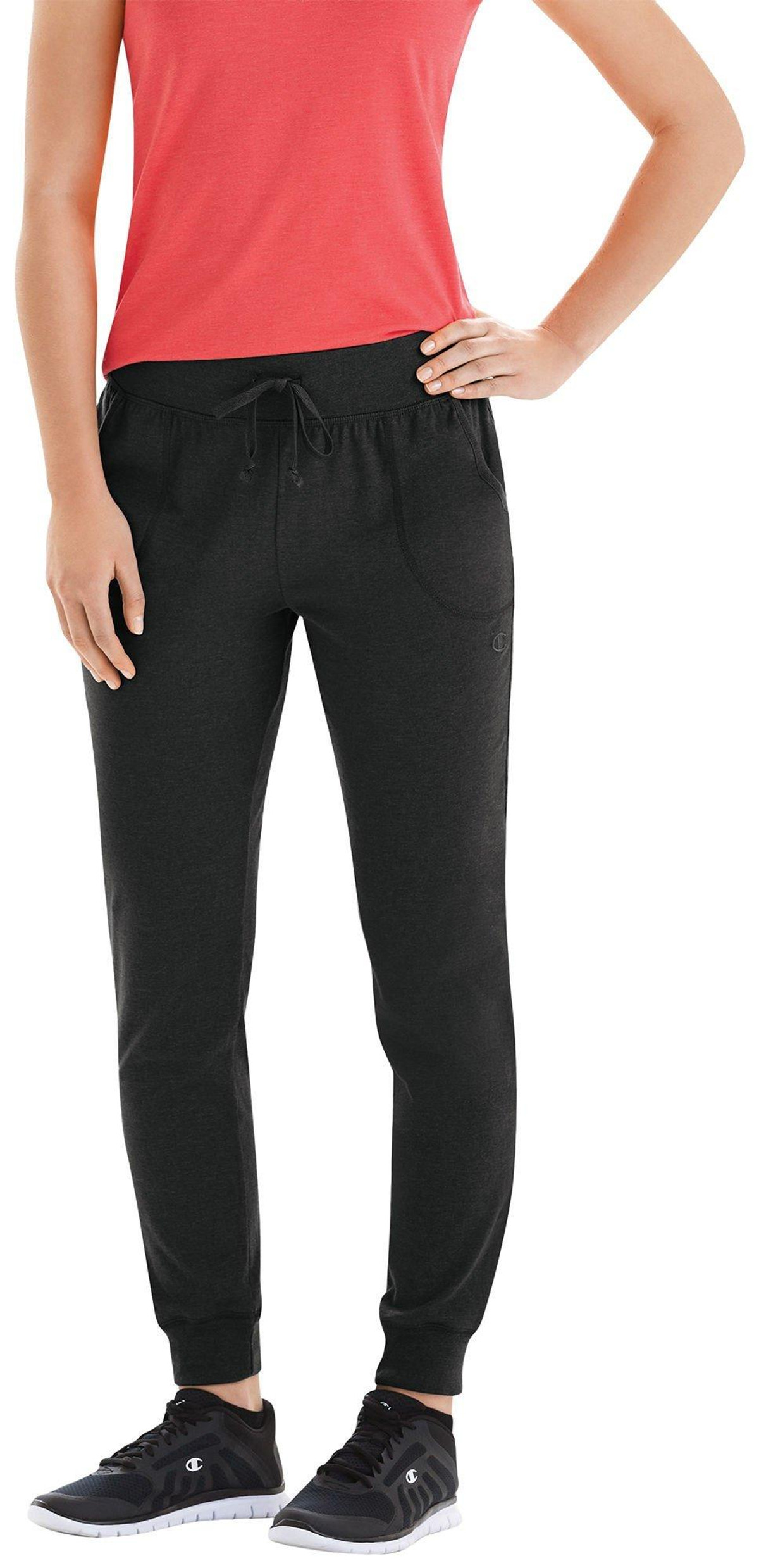 Play like a Champion, in these jogger pants by Champion. These pants feature a solid design, a drawstring wide elastic waistband, front pockets, and a banded hem. Inseam measures approximately 29 inches.