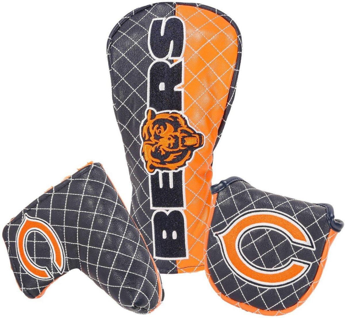 Rep your team with a custom Chicago Bears Headcover from our highly sought-after NFL Golf Collection. Our Golf Headcovers are uniquely designed in-house from CMC Designs. Add a touch of personality and enhance your golf game in style. Our headcovers are meticulously crafted using top-quality faux leather with a plush inner lining to protect your investment.