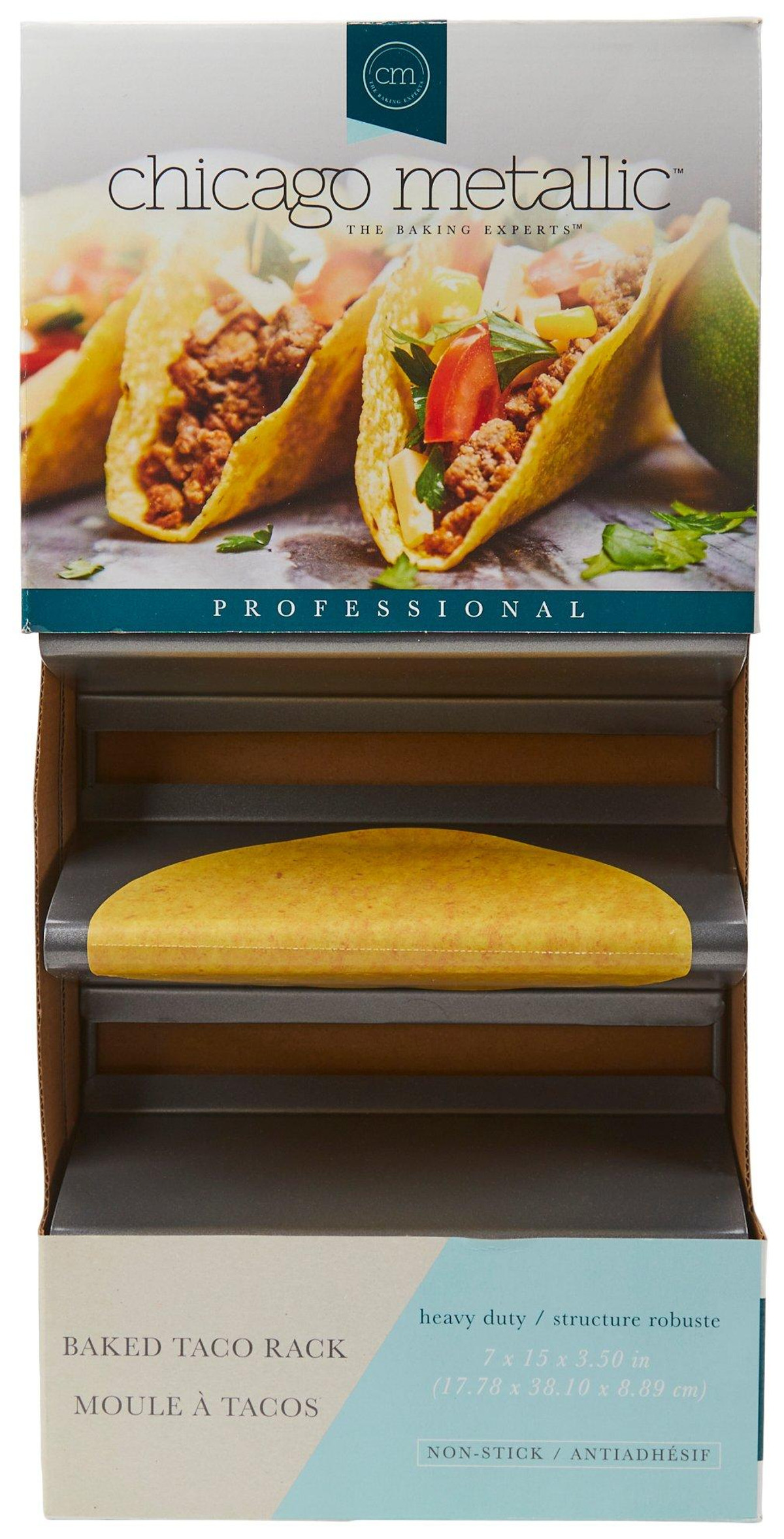 Make taco night a breeze with this Heavy Duty Baked Taco Rack. Designed for durability and convenience, this rack allows you to easily bake perfect taco shells every time. Its sturdy construction ensures it can handle the heat, while the thoughtful design keeps your shells upright and evenly cooked. Ideal for creating crispy, delicious taco shells at home, this rack is a must-have for any taco lover. Measures 7 in x 15 in x 3.5 in.