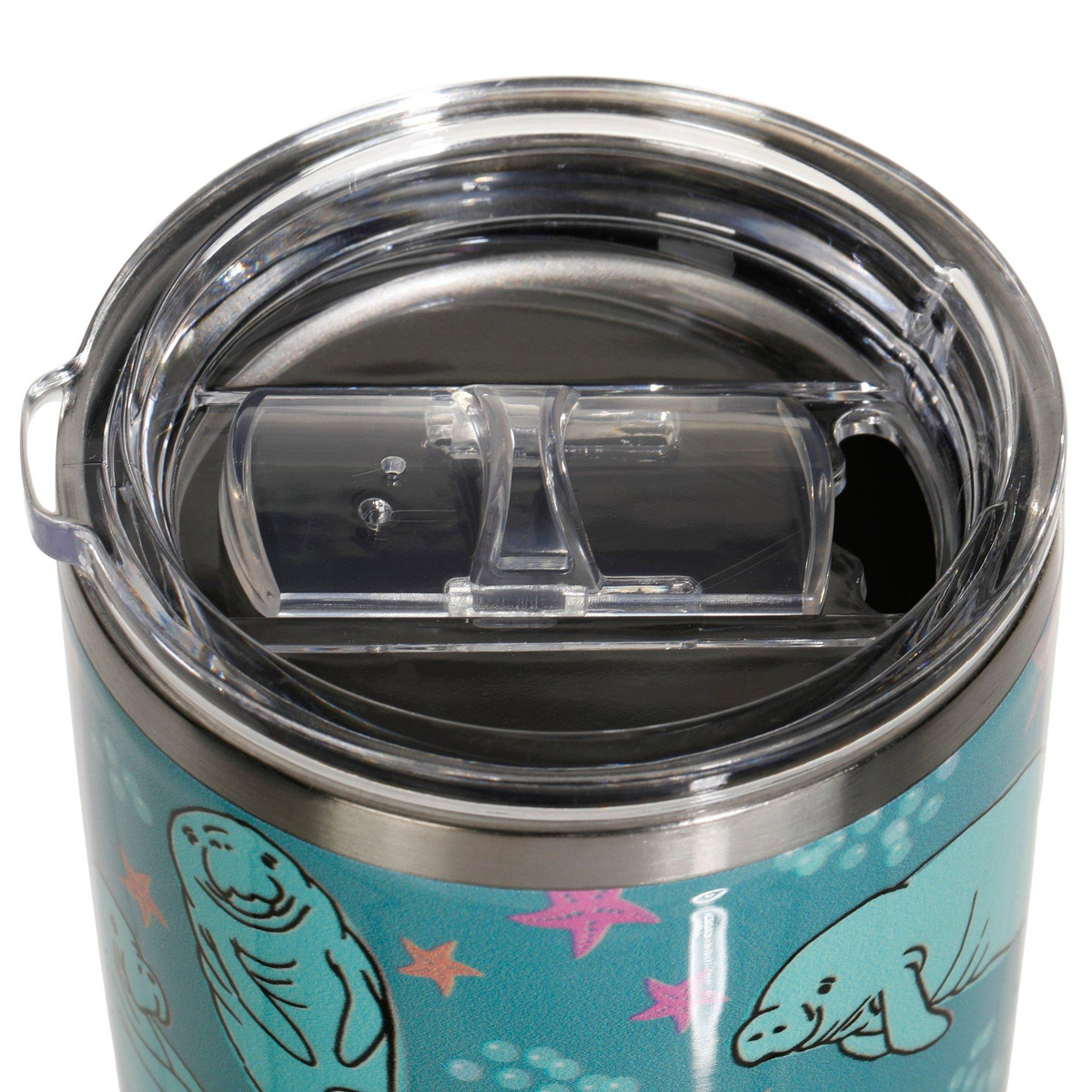 This vibrant Chubby Mermaid Manatoss cup is durable and reliable with a splash of artwork that makes it stylish as well. This travel tumbler keeps drinks hot or cold longer and reduces condensation. Spill-proof lid included. This cup is BPA free and can hold 20 oz.