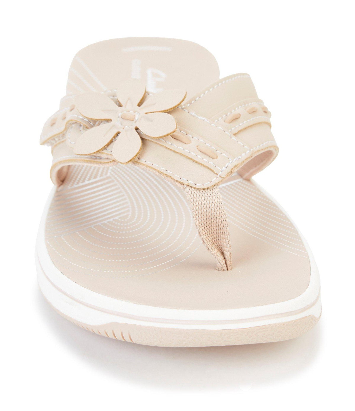 Perfect your look with the Clarks Breeze Opal sandal. The hook & loop pair is elevated by floral detailing for a feminine flair. Finished off with a functional impact-absorbing Cushion Soft footbed and a durable EVA sole.