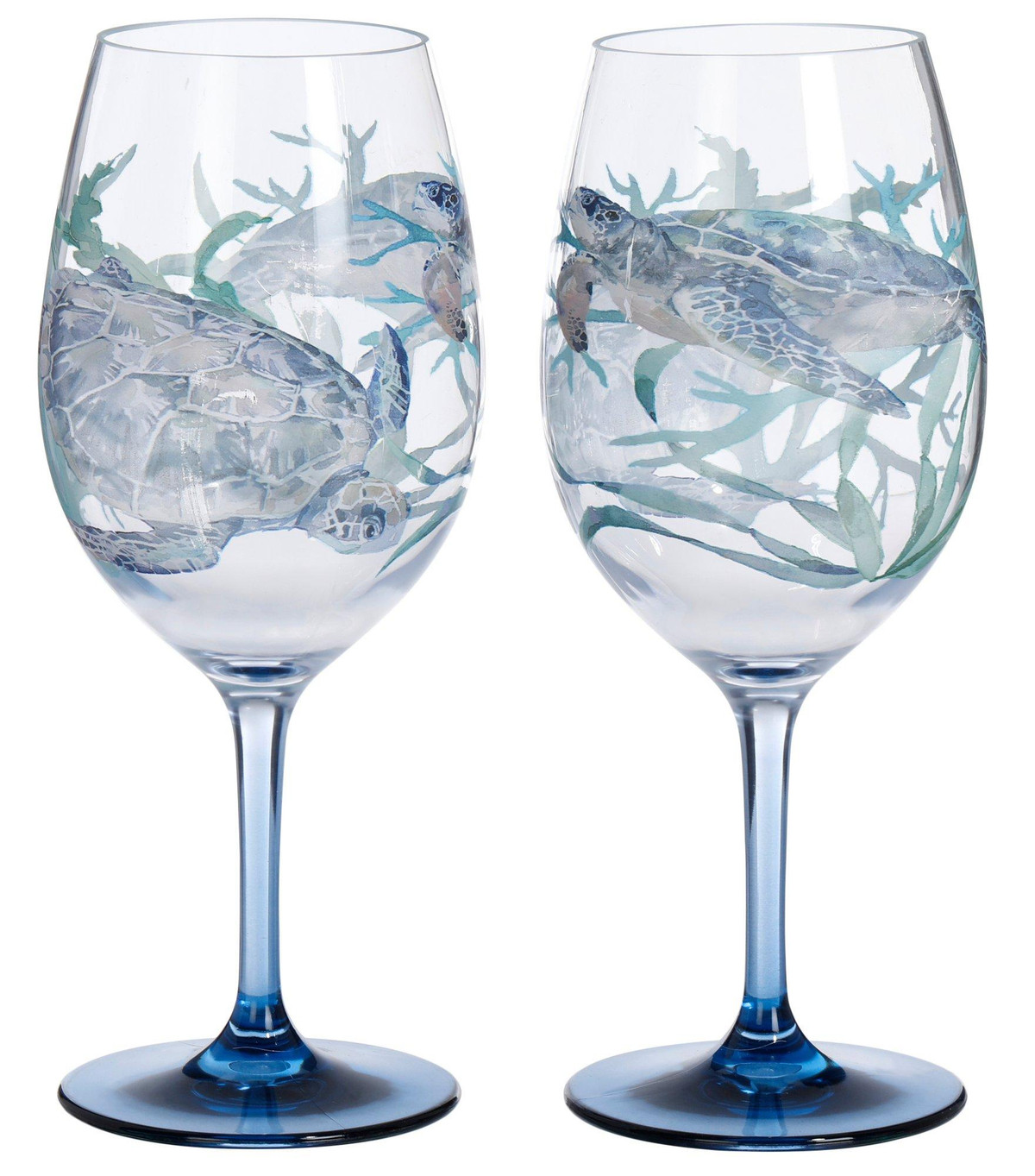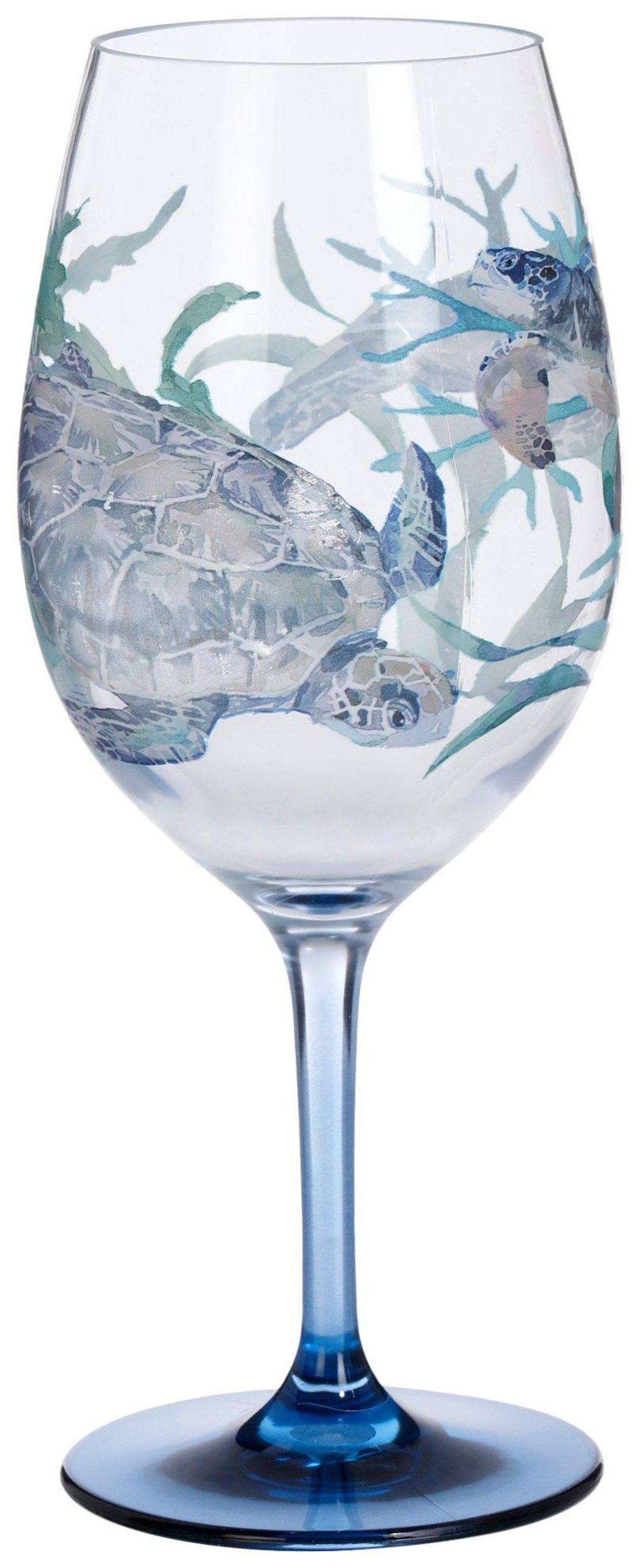 Elevate your drinkware collection with this 2 Pk Grand Cayman Stemmed Wine Glasses Set, featuring a vibrant sea turtle design. These elegant cups are perfect for serving your favorite red wines, white wines, or any beverage of your choice. Crafted with high-quality acrylic, durable and stylish, these cups are ideal for both everyday use and special gatherings. Holds 20 fl oz. Fabrication is 100% acrylic. Measures approximately 9 in x 3.25 in.