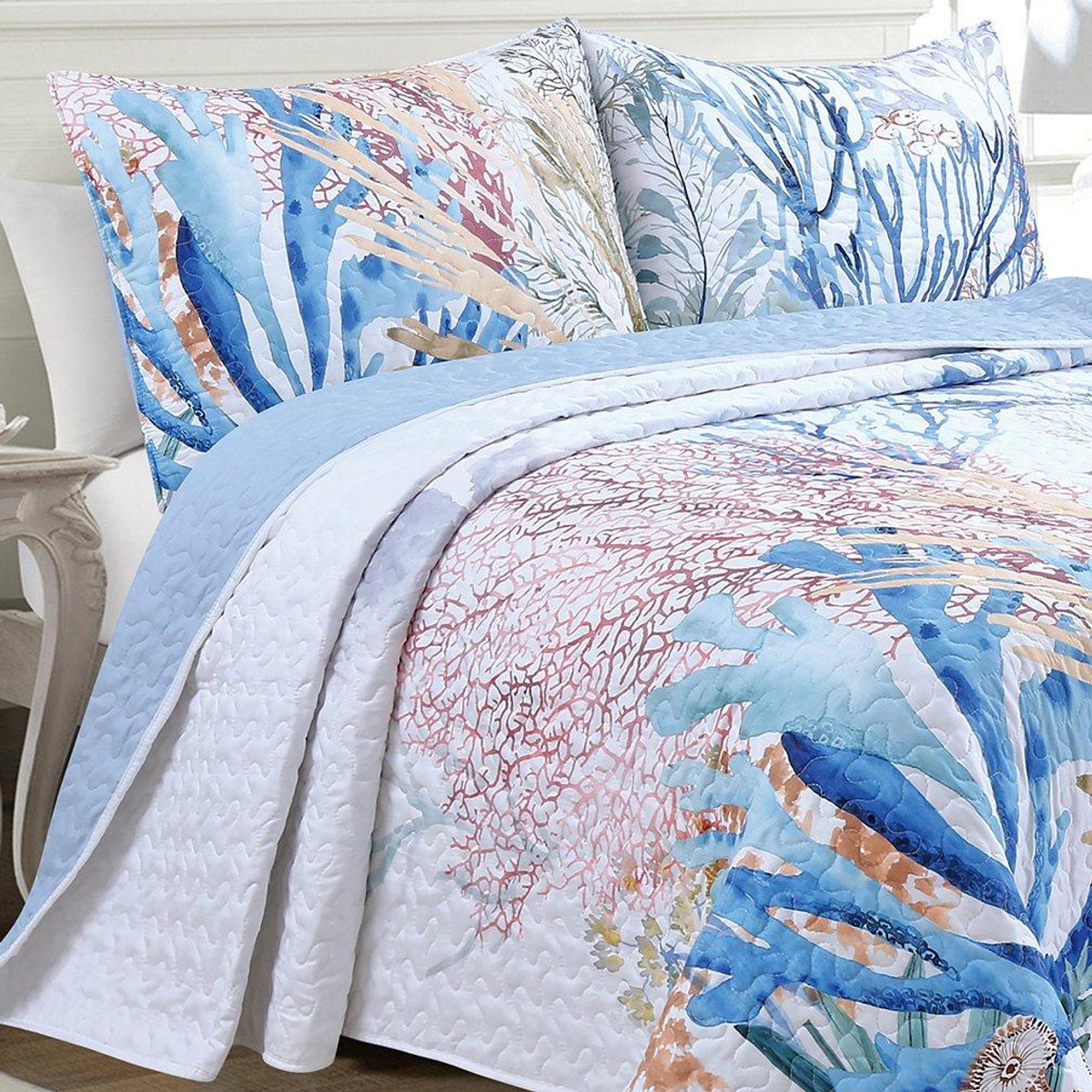 Coastal Home 3 Pc Engineered Coral Brush Quilt Set
