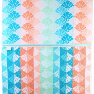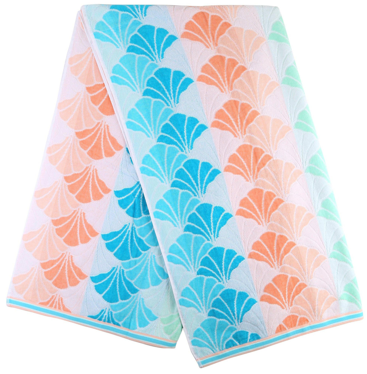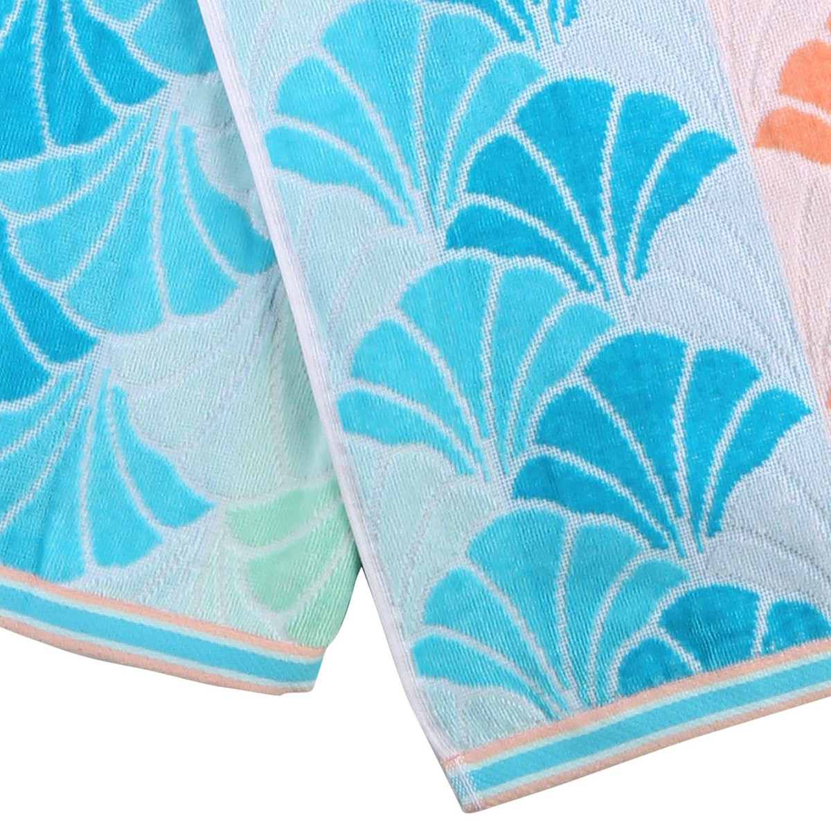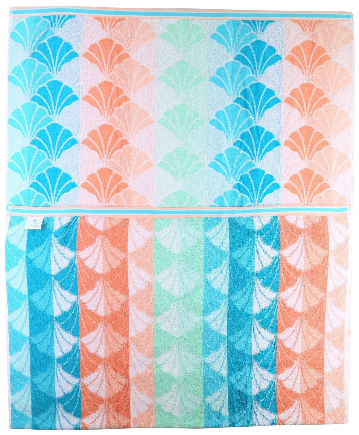 Coastal Home adds a touch of coastal style to your home decoration. This beach towel features a fun print design and striped trim. Measures 68in. L x 36in. W. Fabrication is 70% cotton and 30% viscose.