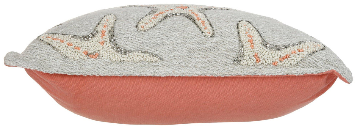 Add a touch of coastal elegance to your home with our 18×18 Embellished Starfish Decorative Pillow. This beautifully crafted pillow features an intricate starfish design on the front side, embellished with fine details that bring a hint of the seaside to any room. The back side is a solid coral color to compliment the coral beads in the starfish. Perfect for your living room, bedroom, or patio, this decorative pillow is a versatile addition to your decor.