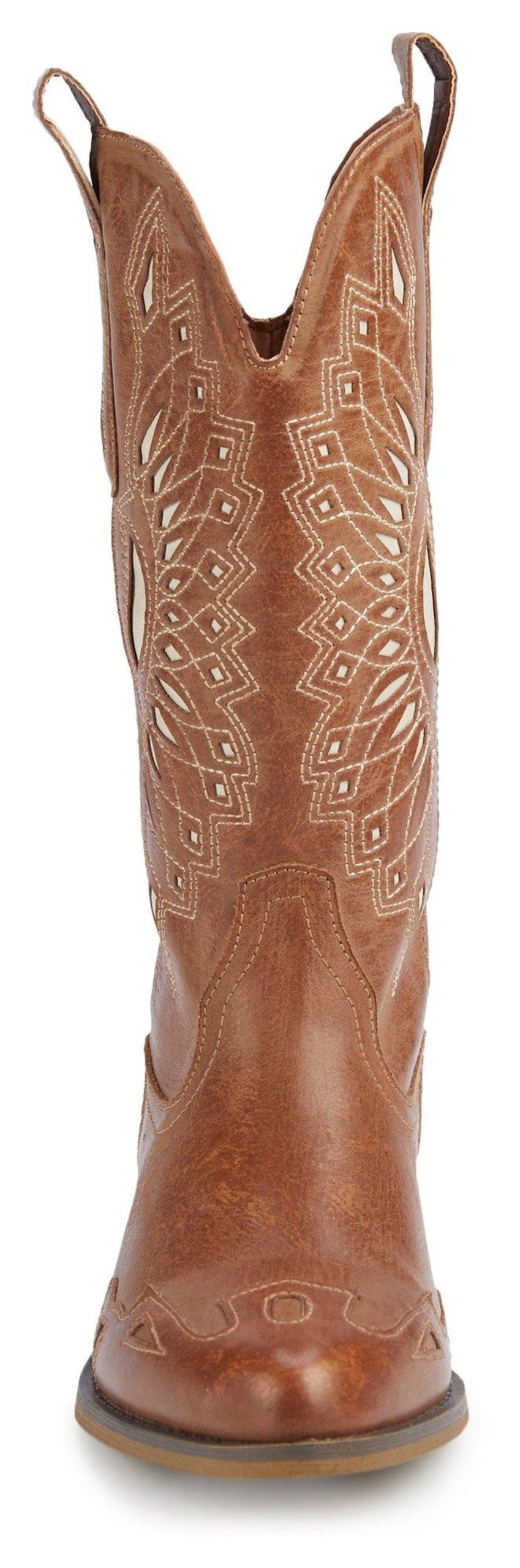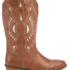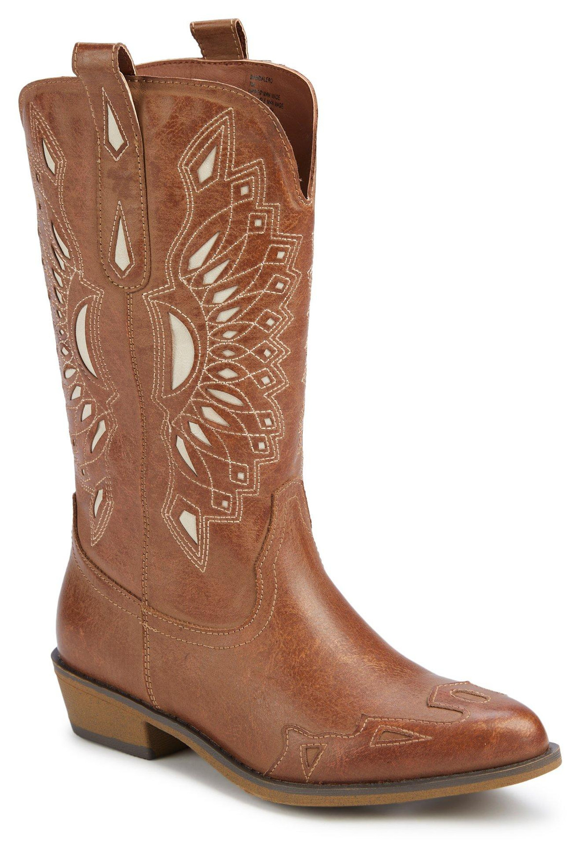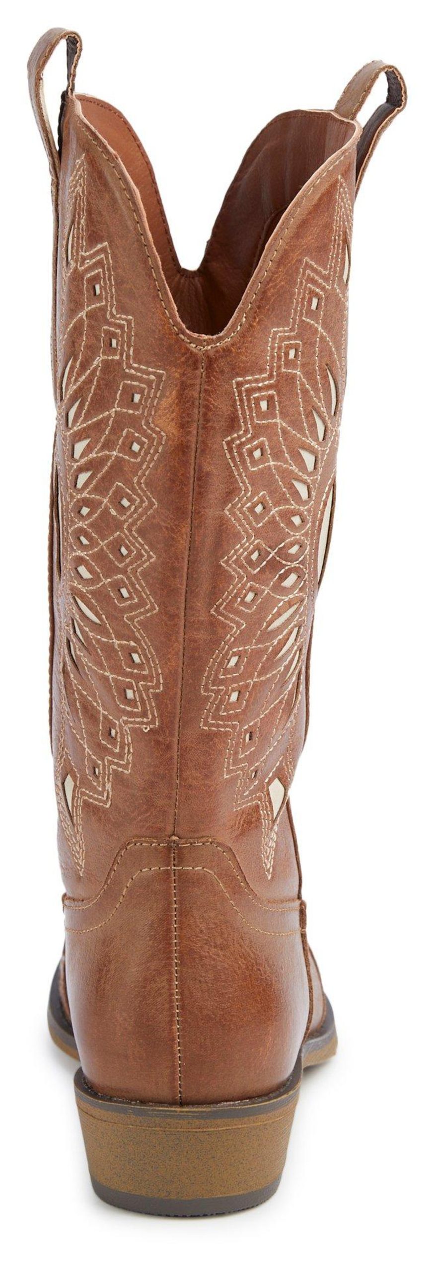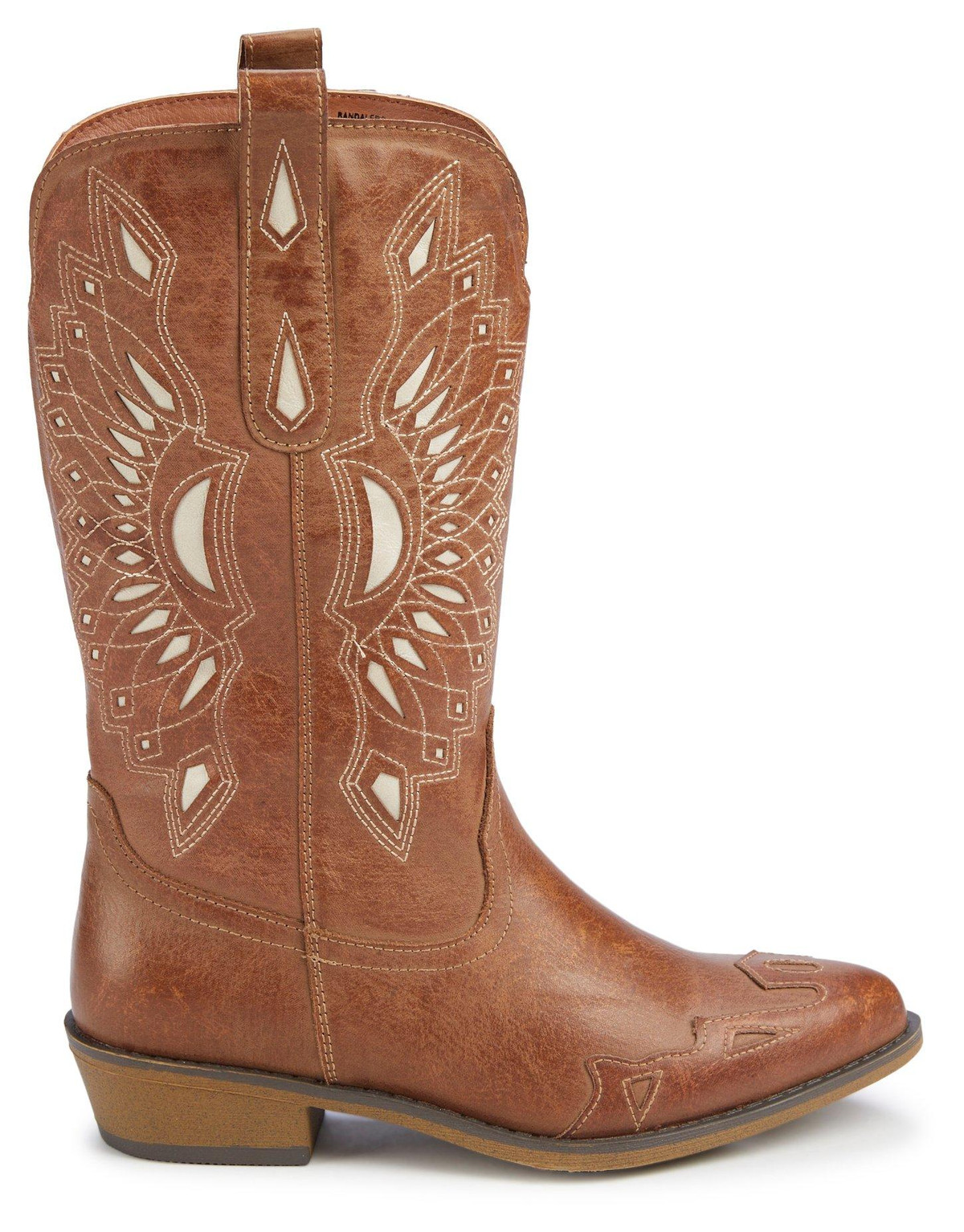 Highlight your country girl style in the Bandelero women’s Western boot. With a faux leather upper and contrast stitch detailing for extra flair, this pull-on boot is cute enough to wear everyday. The padded insole comforts your foot while the block heel is low enough to walk, scoot or dance.
