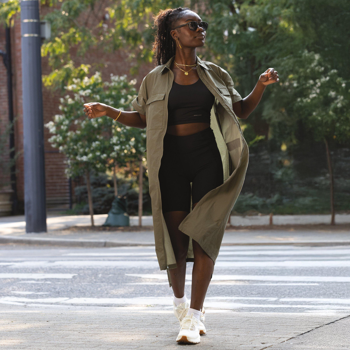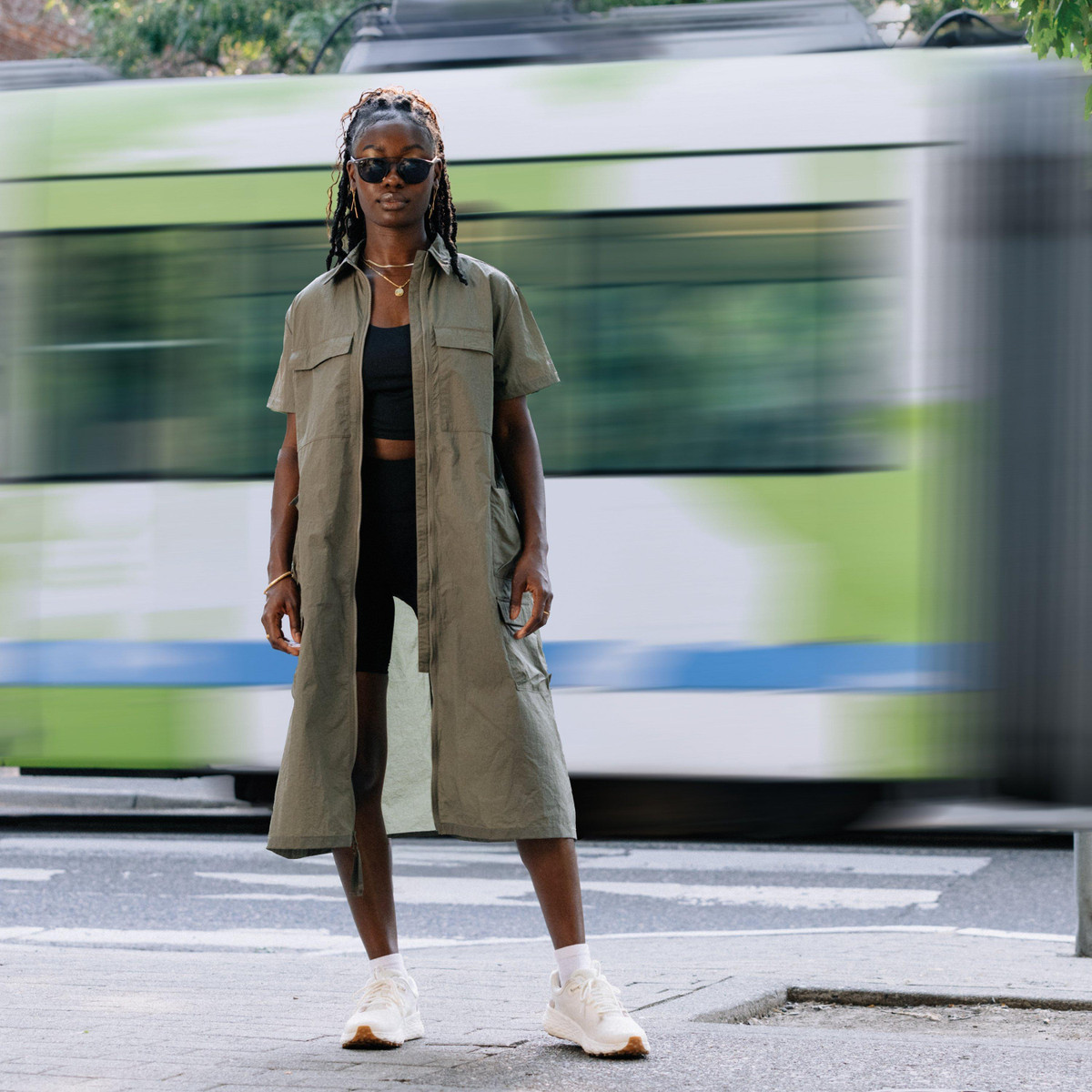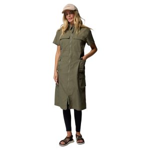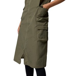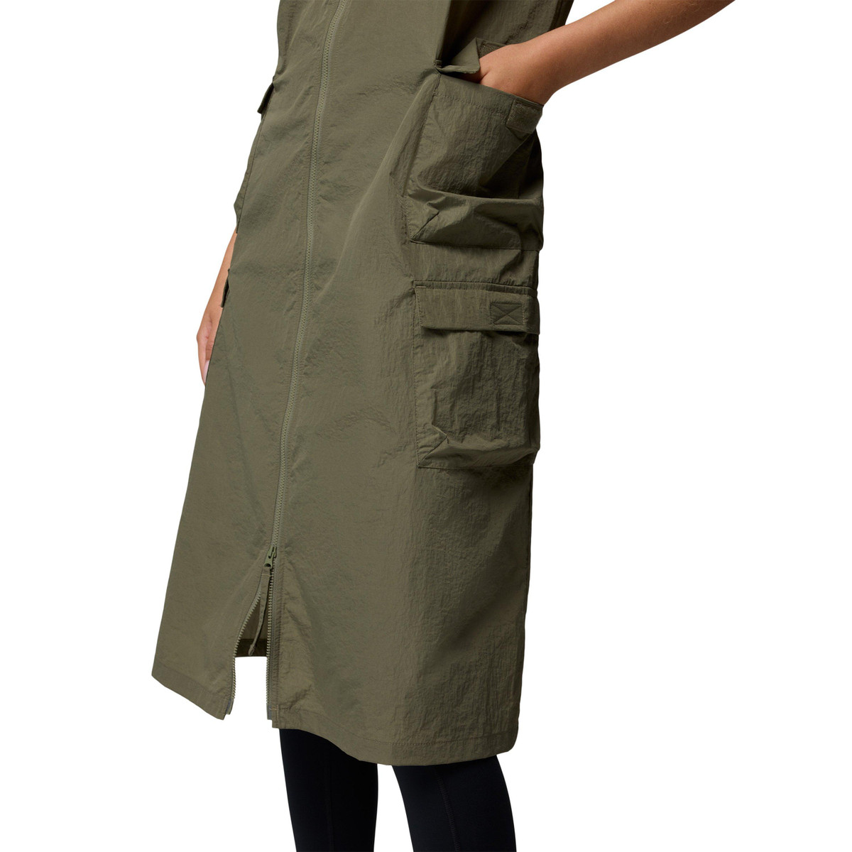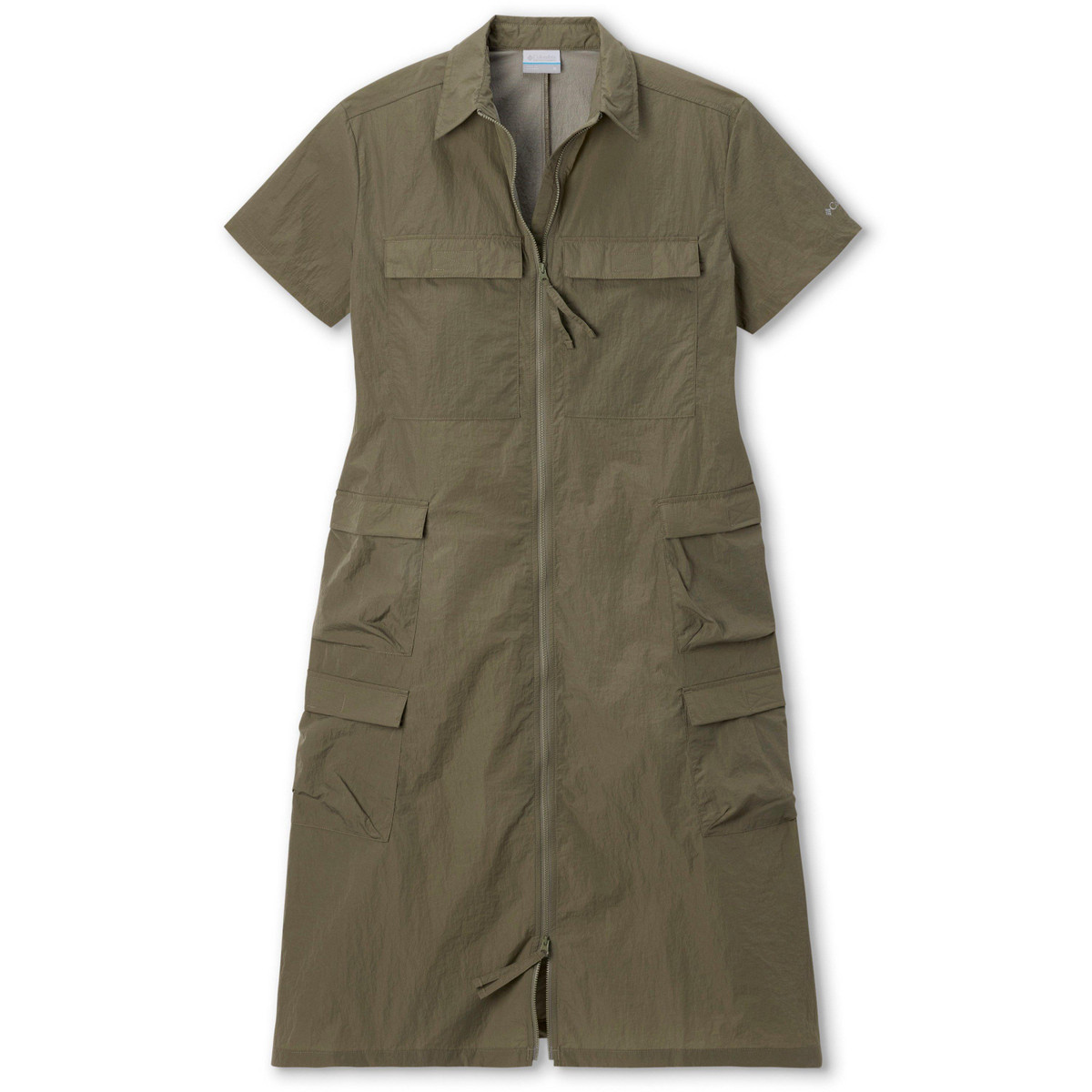 Made from lightweight, water-resistant nylon, the Columbia Elevated View Utility dress has pockets galore. It has a streamlined and breezy feel with a hint of polish for everyday wear. Features Omni-Shield Release advanced repellency, point collar, 2-way front zipper, easy reach zzipper pull, pockets with hook-and-loop closures. 90% nylon, 10% polyester. 46 inches length.