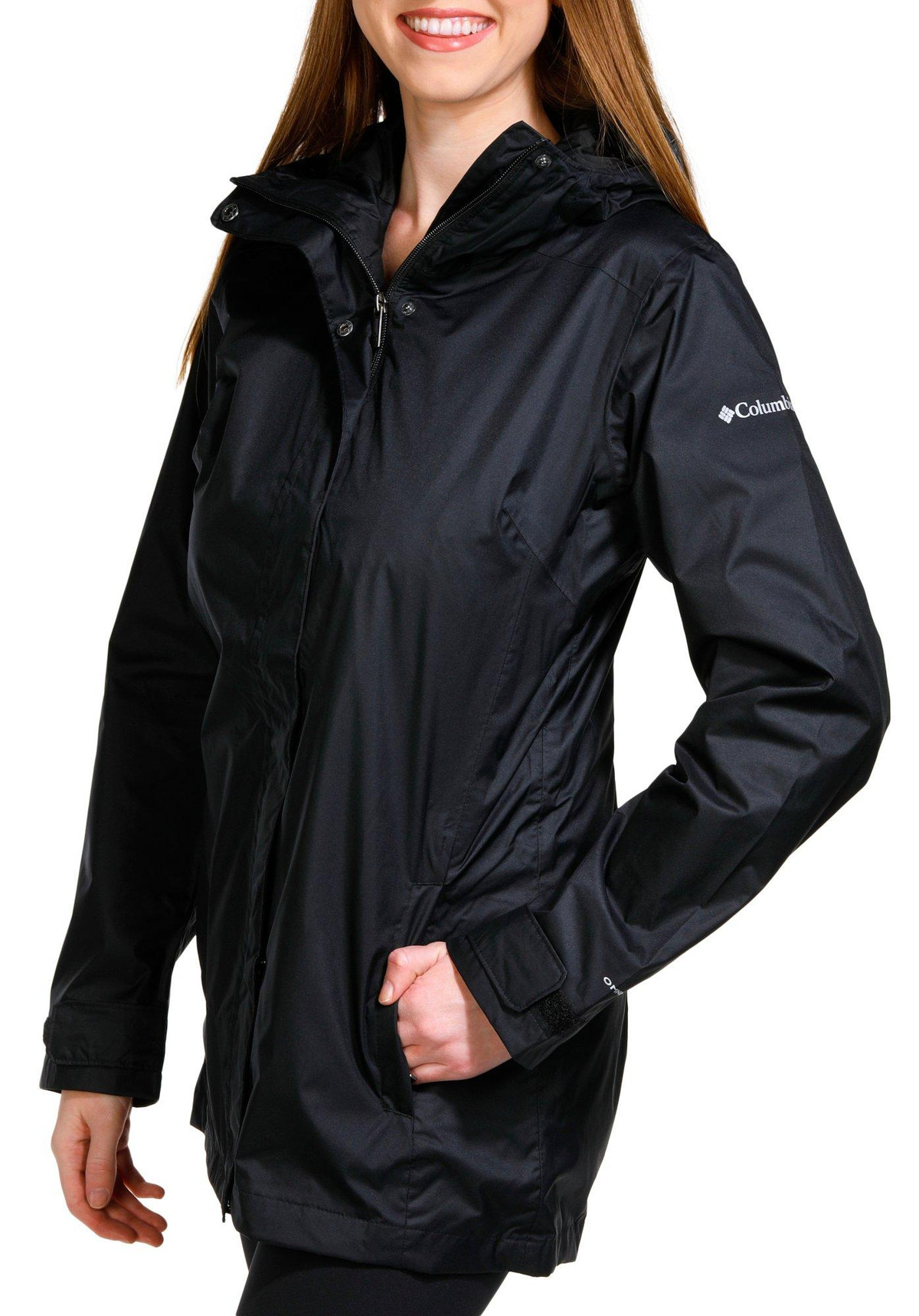 Youll always be up for a downpour in this waterproof-breathable, fully seam-sealed jacket with an adjustable hood and plenty of pockets to keep you and your essentials dry. It features a drawcord-adjustable hood that secures the fit, an interior security pocket and zippered hand pockets secure valuables, and front closure with flap cover keeps wet out.