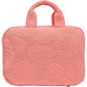 This 2-piece soft-sided case set features a clear vinyl construction with solid color trim and zipper top closure. The larger bag has dual strap handles. Water resistant. Suitable for organizing jewelry, cosmetics, toiletries, cables and wires, or travel bottles at home or on-the-go. Large bag measures approximately 9 in L. x 3 in. W x 8 in. H.