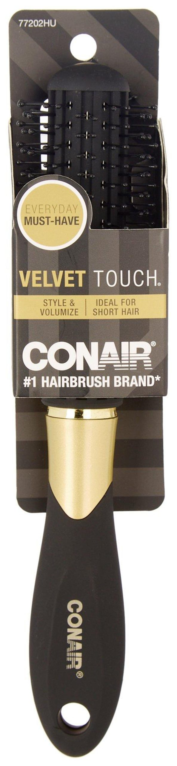 Your hair styling tools aren’t complete without the must-have Velvet Touch Round Brush from Conair. Designed to add some extra volume, this round barrel brush will lift or curl your hair in comfort as you grip its velvety soft handle. Its unique V-shaped bristles give your hair better air circulation so it’ll dry without frizz, and the ball tips prevent snagging or pulling for a full-bodied, salon look achieved in the comfort of your home