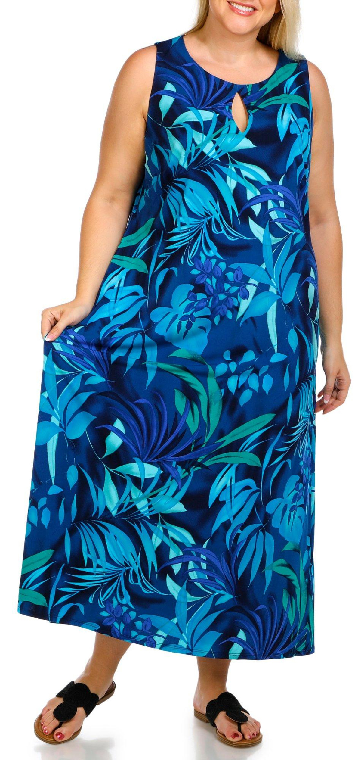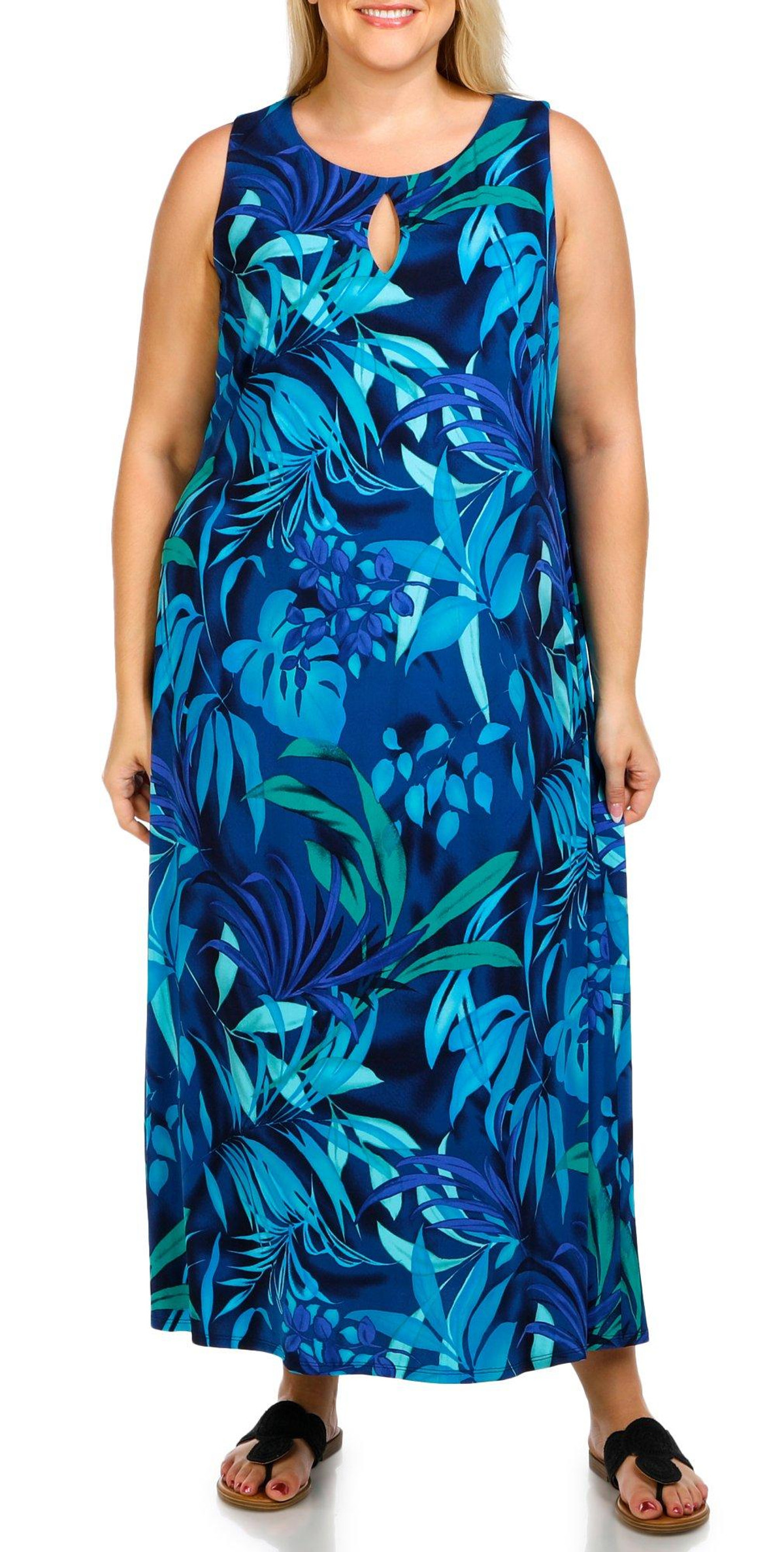 This plus size sleeveless maxi dress is made of polyester and spandex, and features a floral print with a keyhole neckline, and tie back detail. Its’ soft stretch fabric and flowing silhouette make it a stylish and comfortable choice for warm weather occasions.