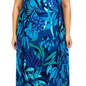This plus size sleeveless maxi dress is made of polyester and spandex, and features a floral print with a keyhole neckline, and tie back detail. Its’ soft stretch fabric and flowing silhouette make it a stylish and comfortable choice for warm weather occasions.
