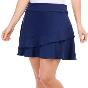 Introducing our Petite Active 18 in Skort, designed for both style and comfort. Made from a blend of rayon, nylon, and spandex, this skort features a chic solid color and a convenient pull-on waistband. The built-in shorts provide added comfort and coverage, while the faux front and back pockets add a touch of flair. Perfect for active days or casual outings, this skort is a versatile addition to your wardrobe.
