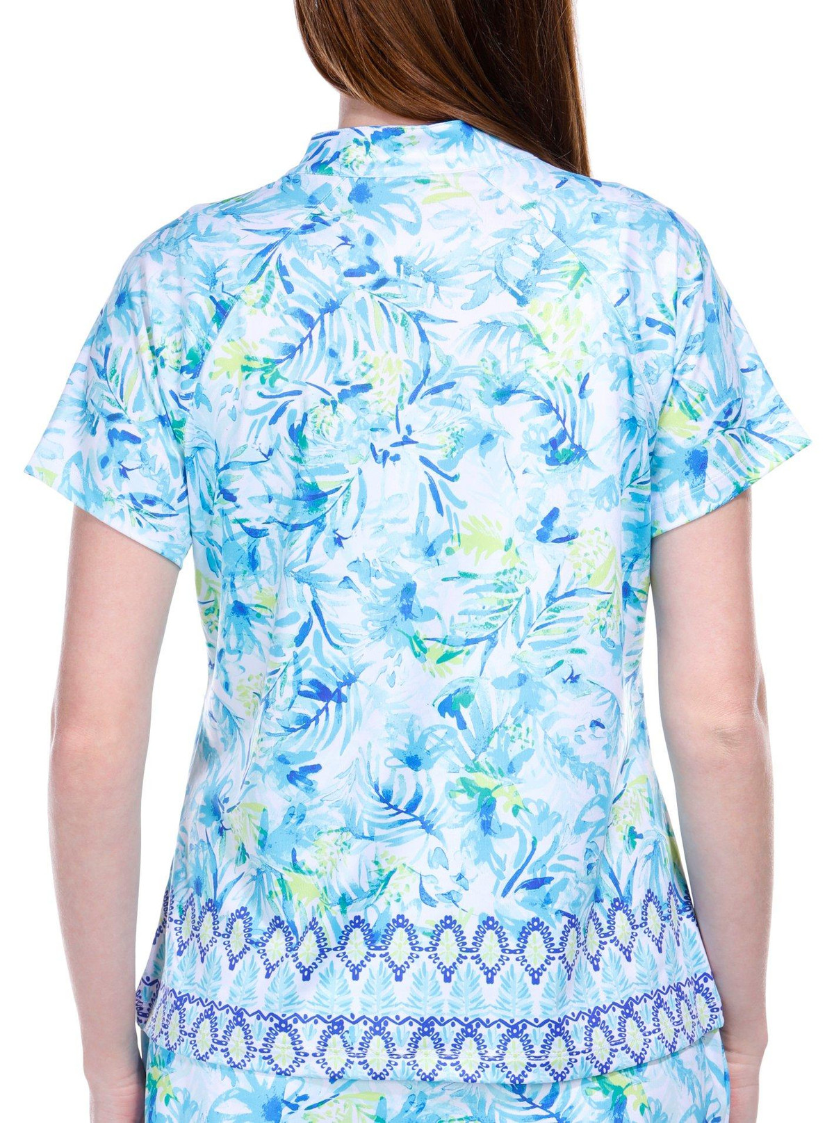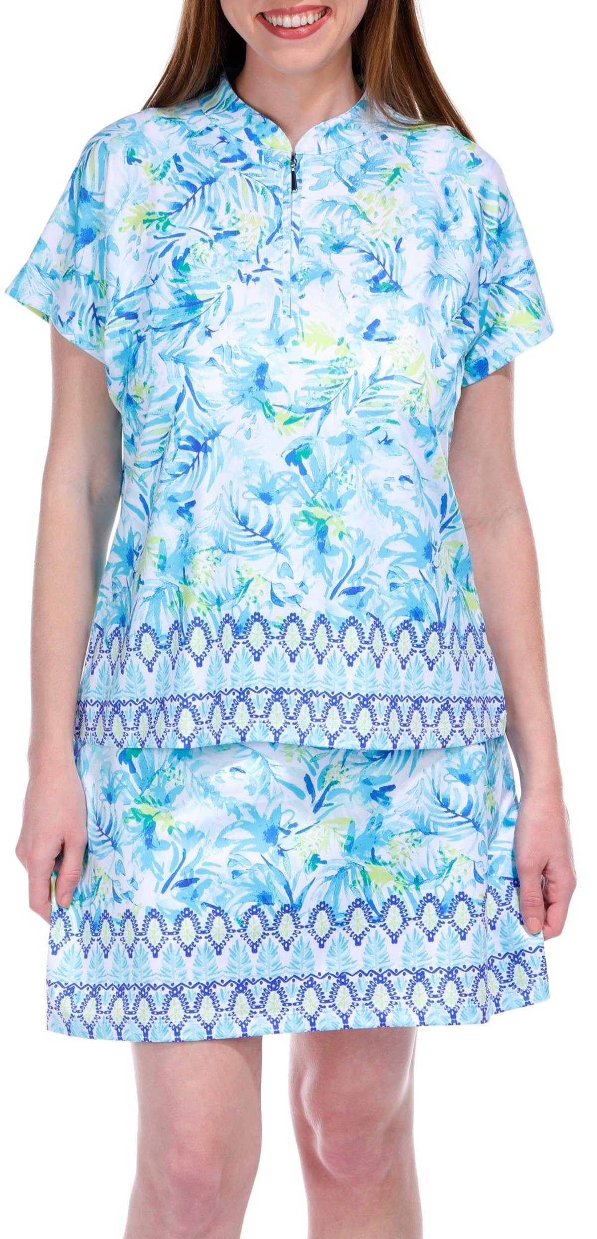 The Women’s Print 1/4 Zip Short Sleeve Top features a stylish golf border print, perfect for a day on the course. Made from lightweight, breathable fabric, it offers comfort and flexibility with a 1/4 zip design for adjustable ventilation. The short sleeves provide freedom of movement, making this top both functional and fashionable for golf or casual wear. The fabrication is 92% polyester and 8% spandex.