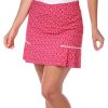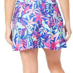 This womens active skort features a lively leaves print and playful ruffles for a fun, feminine touch. Designed for movement and comfort, it offers a flattering fit that transitions effortlessly from workouts to weekend wear. Fabrication is 92% polyester and 8% spandex.