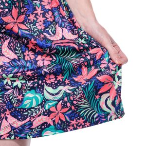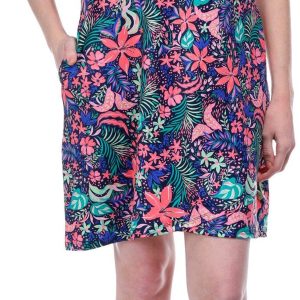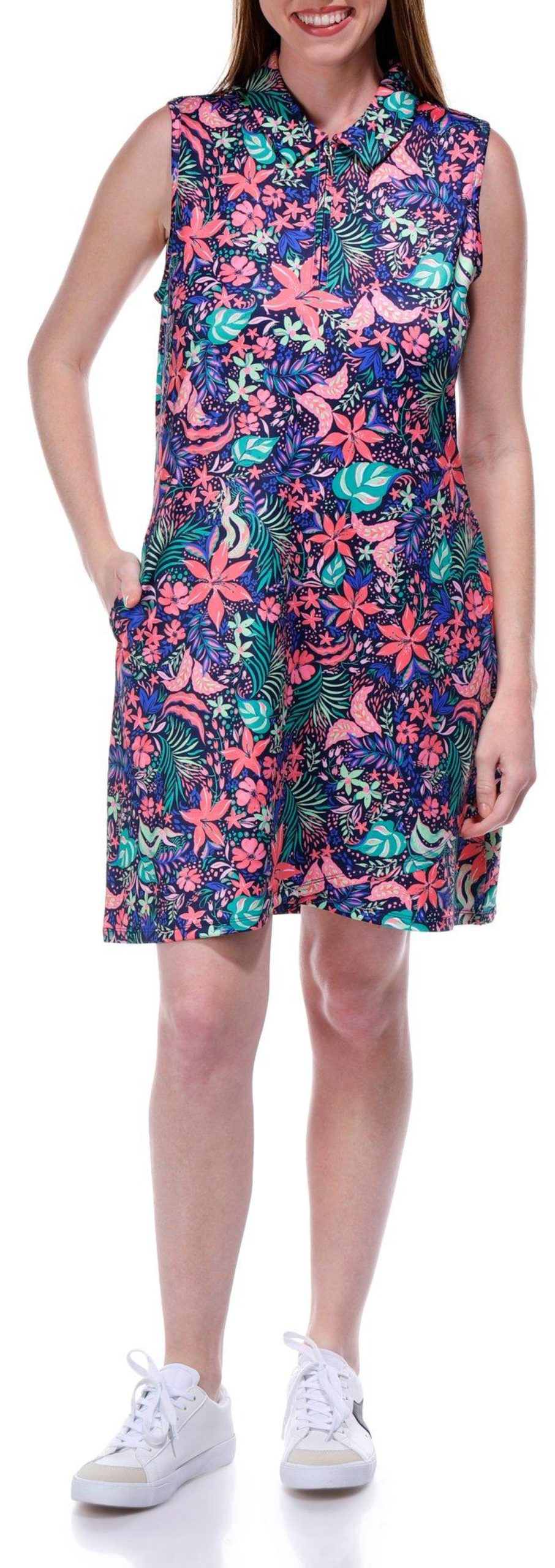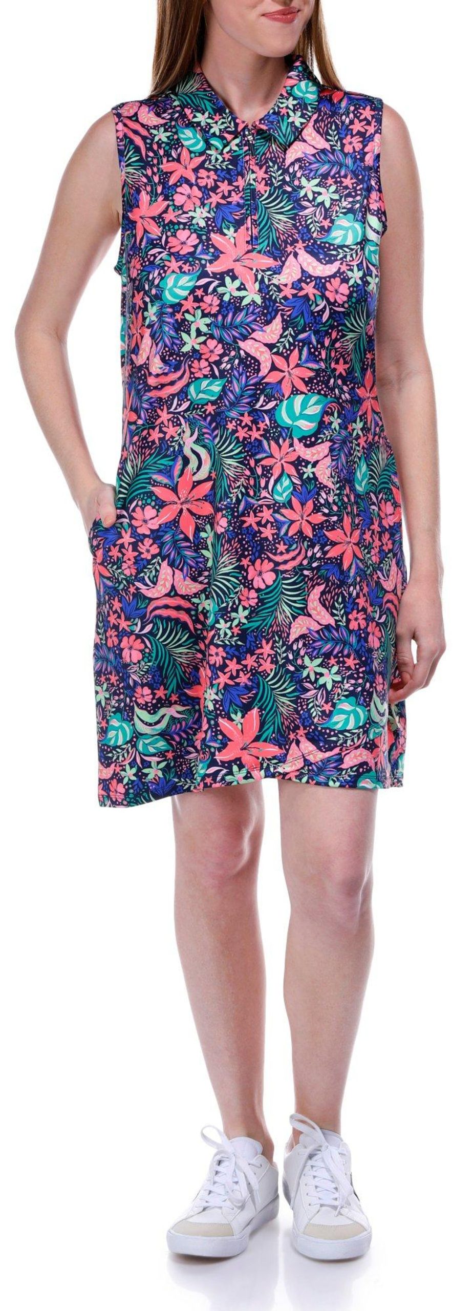 Be free and active in this Golf dress. It features a stylish graphic design on soft lightweight performance stretch fabric, a quarter zipper placket, and two side seam pockets. The top length measures approximately 32 in. Fabrication is 92% polyester and 8% spandex.