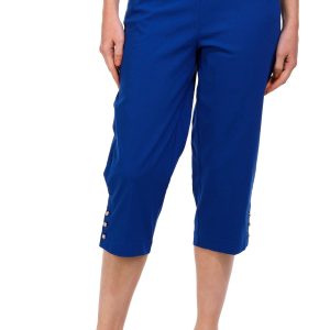 Introducing our Womens Pearl Button Capris Pants, the perfect blend of elegance and comfort. These capris feature a stylish solid color and chic pearl button accents on the hem, adding a touch of sophistication. With convenient side slip pockets and a comfortable pull-on waistband, they are designed for ease and style. Made from a high-quality blend of rayon, nylon, and spandex, these capris offer a flattering fit and lasting comfort. Inseam measures 20 in.