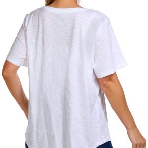 Cheers to festive style with this Petite Scoop Neck Americana Cocktail Top. Made from 100% cotton, it features a fun, rhinestone-embellished cocktail graphic with Americana flair, a scoop neckline, and short sleeves.