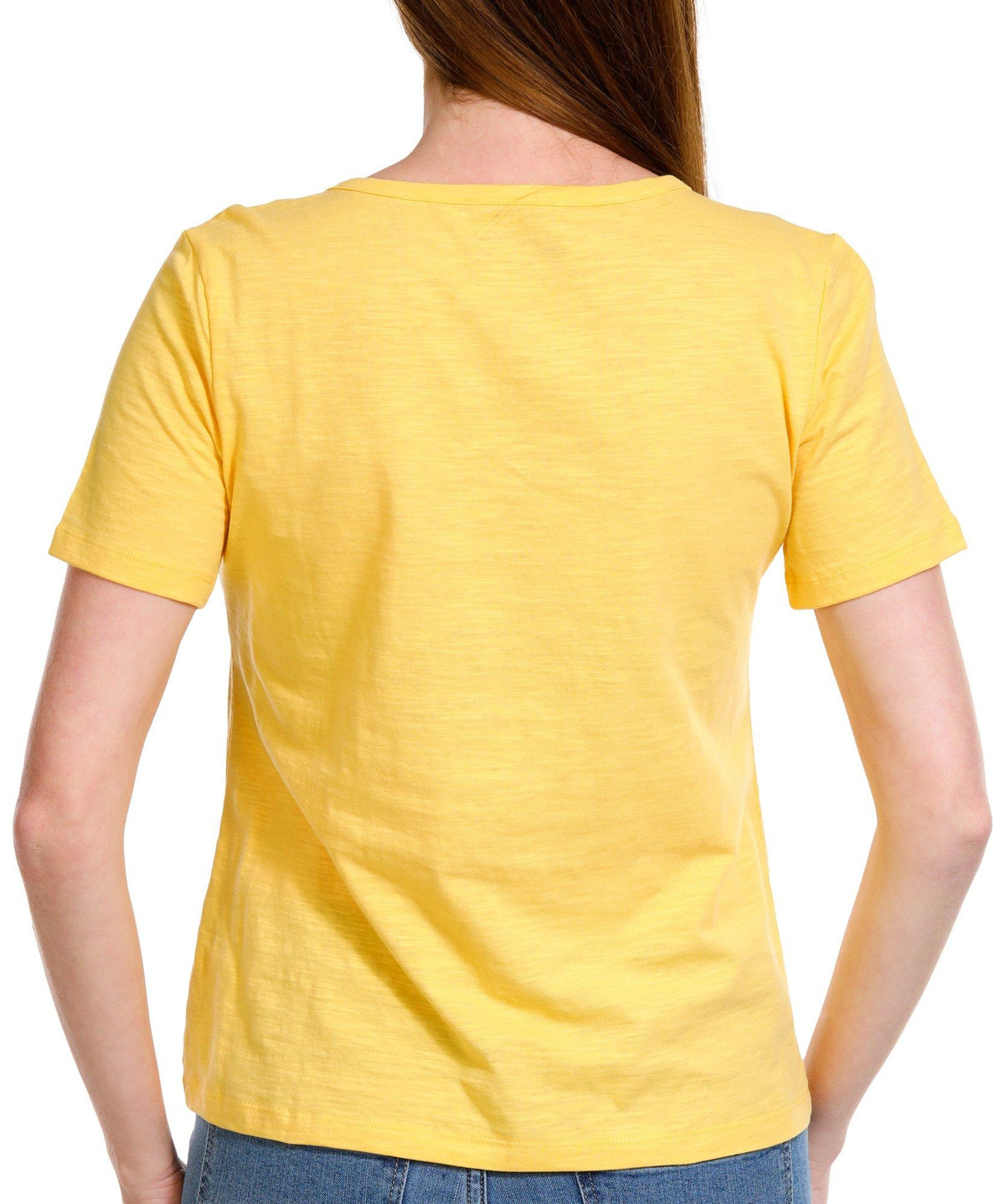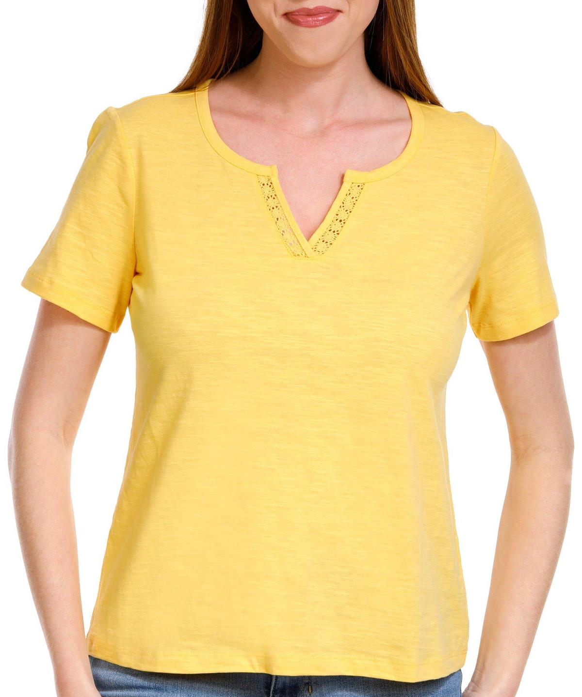 The Petite Solid Split Neckline Short Sleeve Top is a versatile and comfortable wardrobe staple. Made from 100% cotton, it offers a soft, breathable fit for all-day comfort. The split neckline adds a stylish touch, while the solid color design makes it easy to pair with any bottoms. With a 24-inch length, this top is perfect for casual outings or layered looks.