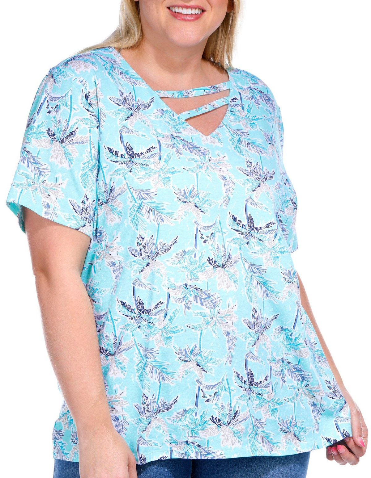 Add a splash of flair to your wardrobe with the Print Keyhole Short Sleeve Top, an ideal mix of style and comfort. Made from a soft and stretchy blend of 95% cotton and 5% spandex, this top provides a breathable yet figure-flattering fit. The eye-catching print design is complemented by a charming keyhole detail at the neckline, adding a hint of sophistication.