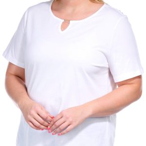 The Short Sleeve Everyday Tee is crafted from soft cotton, offering ultimate comfort for daily wear. Featuring a stylish keyhole neckline with a rectangle bar detail, this tee adds a subtle yet chic touch to your casual wardrobe. The breathable fabric ensures you stay cool and comfortable throughout the day. Top length measures approximately 26 in.