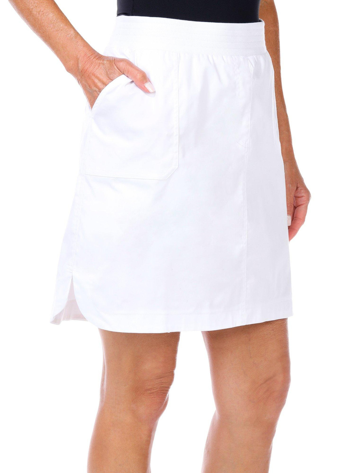 This skort blends sporty function with everyday style. Crafted from breathable poplin and fully lined for comfort, it features front pockets plus an additional zippered pocket for secure storage. The streamlined silhouette makes it ideal for active days or casual outings. Self fabrication is 60% cotton, 37% polyester, 3% spandex. Contrast fabrication is 97% cotton and 3% spandex. Lining fabrication is 95% cotton and 5% spandex.