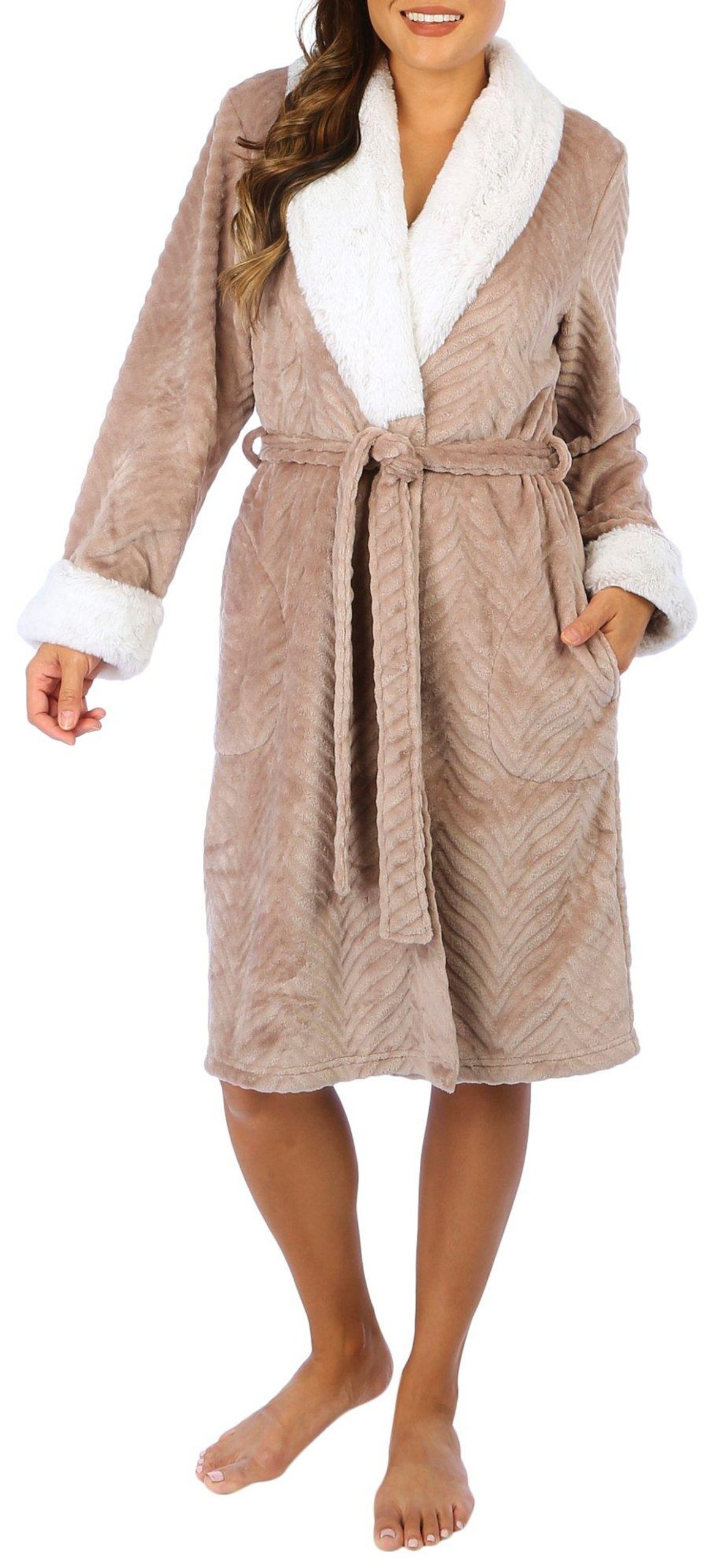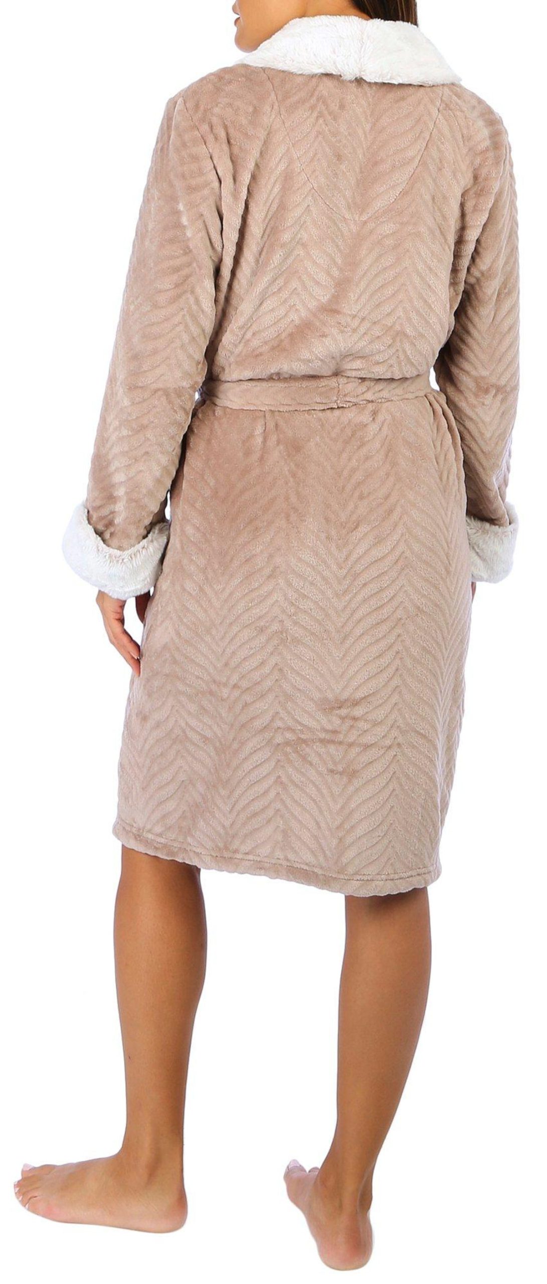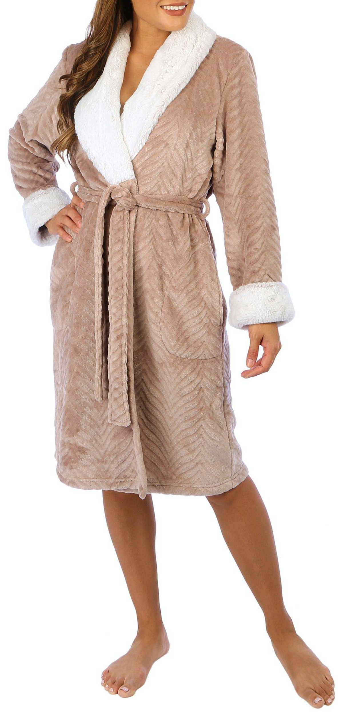 Wrap yourself in luxury with our women’s soft plush bathrobe. Made from ultra-cozy fabric, this robe offers unparalleled comfort and warmth, perfect for lounging at home or post-bath relaxation. Featuring a stylish design and an adjustable tie waist, it combines elegance and functionality. Treat yourself to the ultimate in comfort! Measures approximately 42 in. from shoulder to hem. Fabrication 100% polyester.