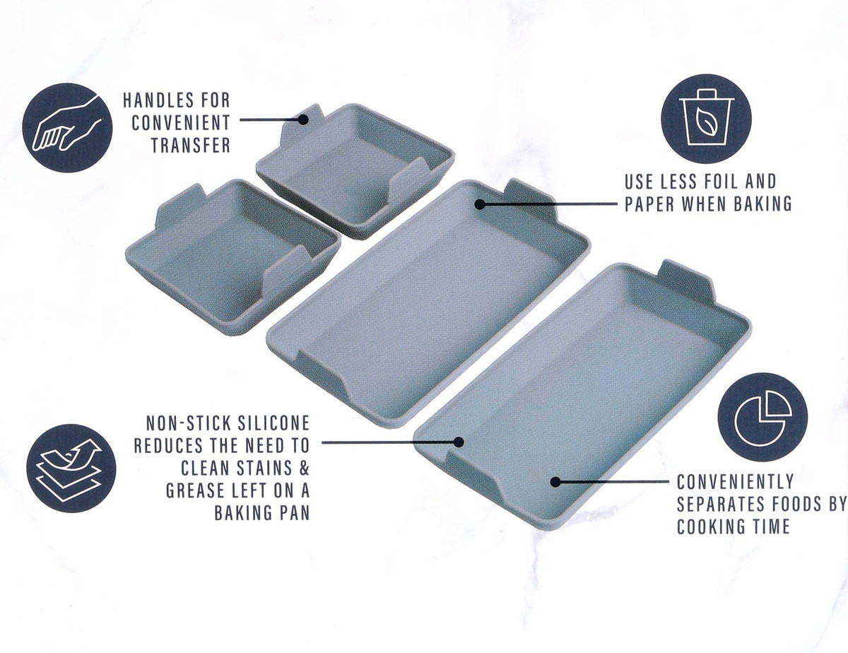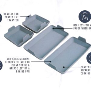This Grey Baking Silicone Dividers & Sheet Pan Set includes 5 silicone dividers and 1 baking sheet pan. The silicone dividers help create even portions for your baked goods, while the baking sheet pan ensures even baking. An essential set for any baking expert looking for precision and consistency.