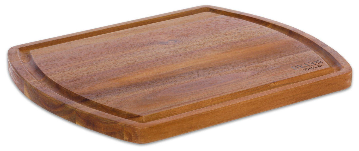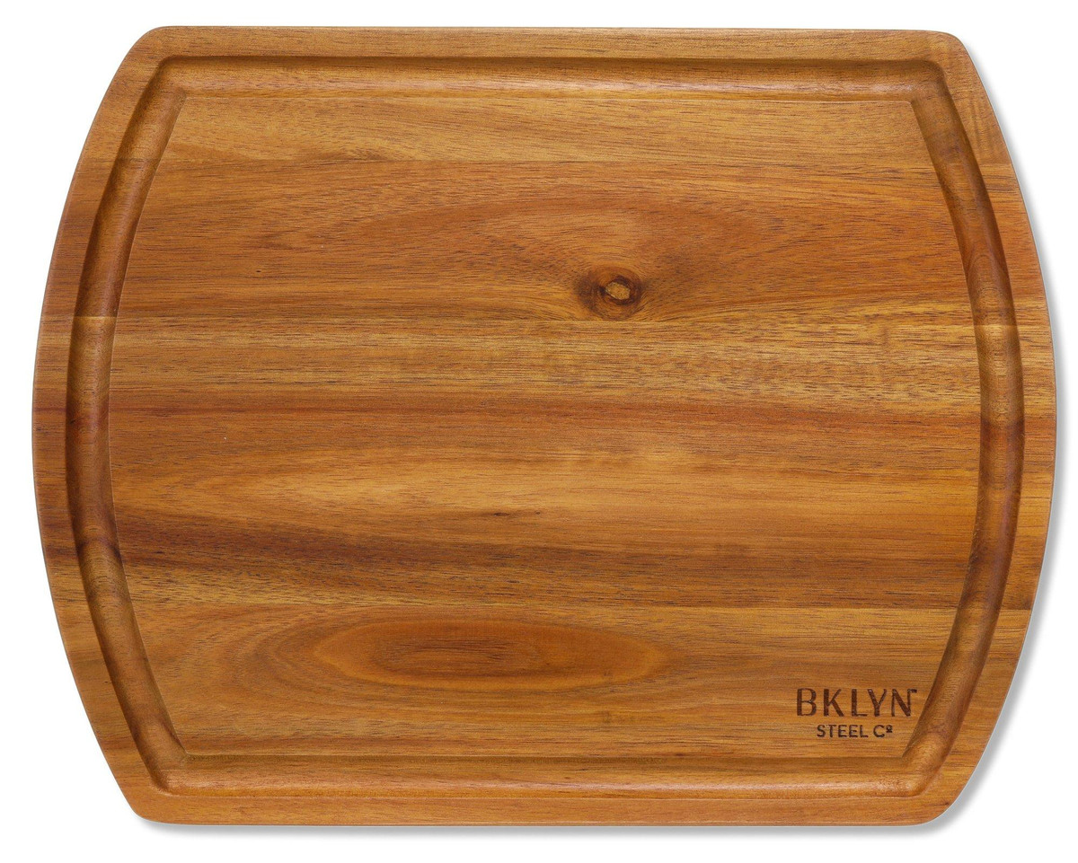 This Core Home Cutting Board made from Acacia wood is rich with natural oils that give it a natural water resistance. It has a unique grain pattern which makes it a nice kitchen decor piece as well. Measures 14 x 11 x 0.75 in.