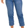 These Slim Crop Capris offer polished comfort with a chic cropped length and sleek faux back pockets. A gold button waist trim lends an elevated touch to the look. The fabrication is 76% rayon, 21% nylon, and 3% spandex with 100% cotton trim. Designed for all-day ease, they are easy care and machine washable. Inseam measures approximately 22 inches.