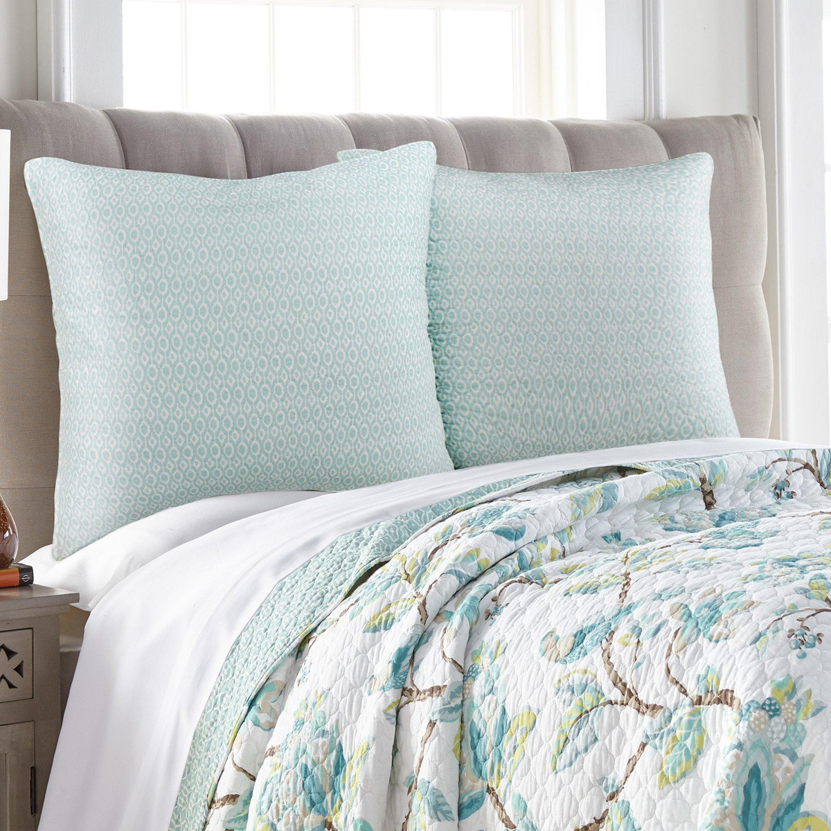 The Cressida Quilted Euro Sham by Levtex Home is inspired by antique French wallpaper. Offered in teal and cream, this design will immediately transform your bedroom. These shams feature small ikat design. The Euro Sham 2(26x26in.) is microfiber, quilted with a cotton rich filler and is machine washable. Pillow inner not included. Enjoy for years to come!