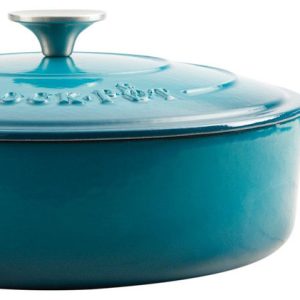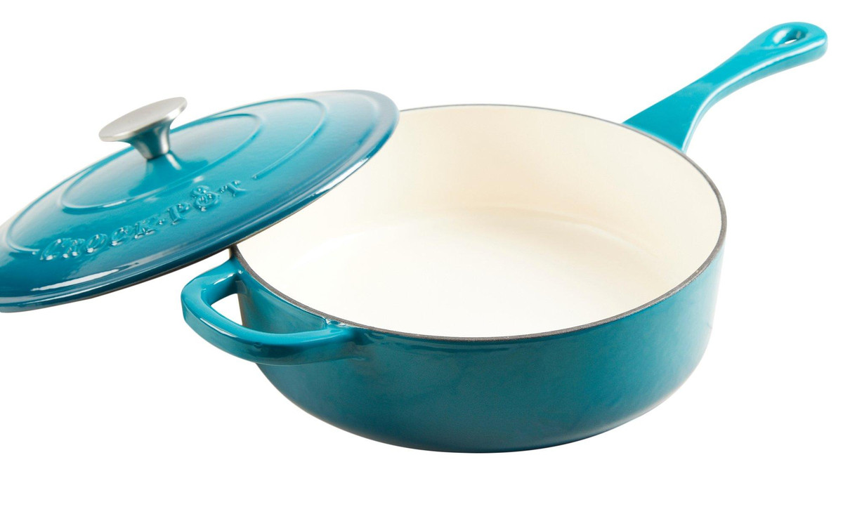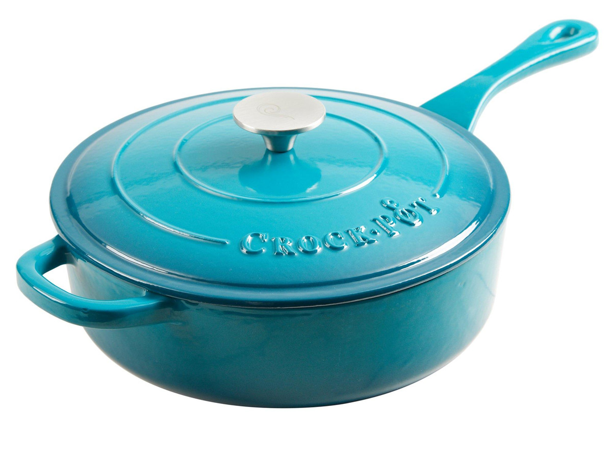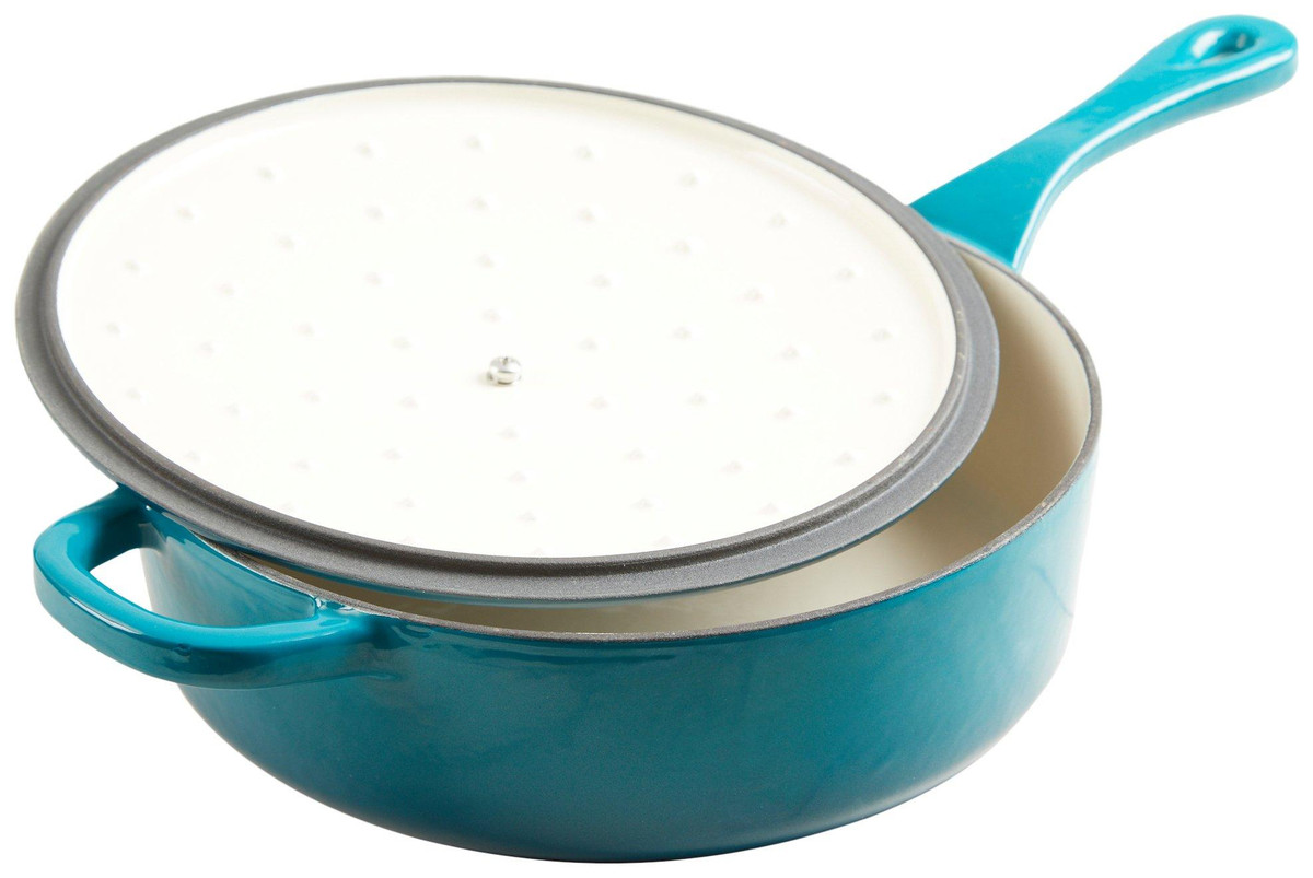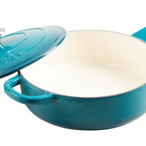 Slow simmer a flavorful stew, bake or fry up a new creation with the versatile 3.5 Quart Sauté pan with self basting lid and helper handle. Made of quality cast iron with a beautiful and durable enameled finish, it looks great in the kitchen or on the table. Cook delicious meals with this versatile sauté pan which distributes and retains heat evenly. Effortlessly take it from the stove top to the oven and store leftovers in the refrigerator.