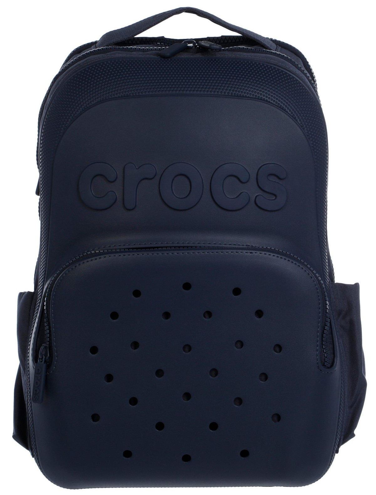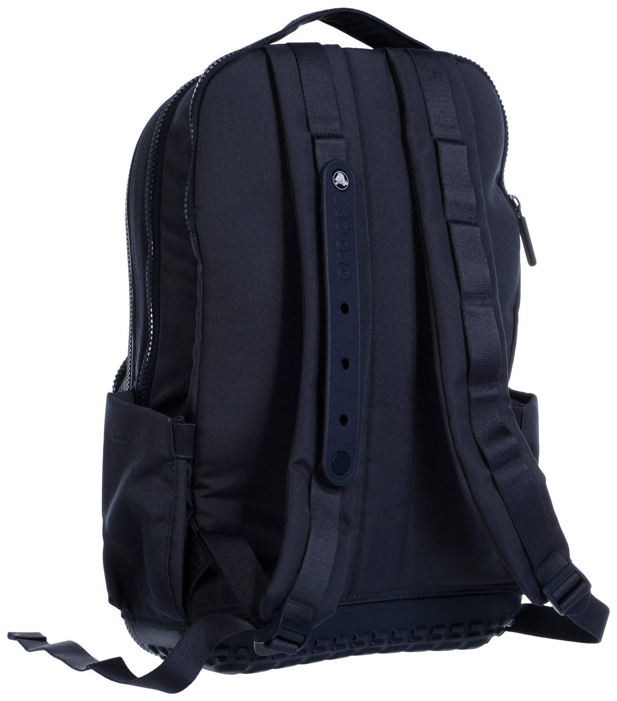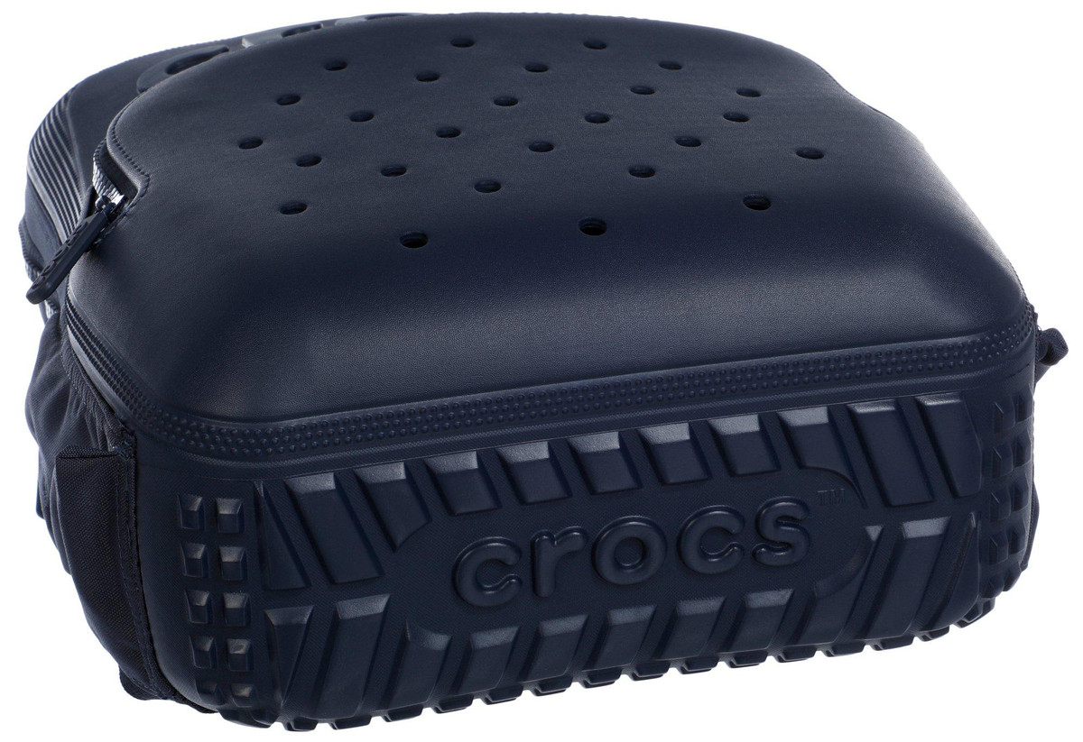 Stand out with customizable style in the Crocs Classic Backpack. Featuring 26 front pocket holes and 3 strap holes for Jibbitz charms, it combines signature molded detailing with practical features like a padded laptop compartment, tread base, and spacious interior. Ideal for school, work, or daily use. Spot clean for best care. Measures approximately 18 in x 13 in x 7 in.