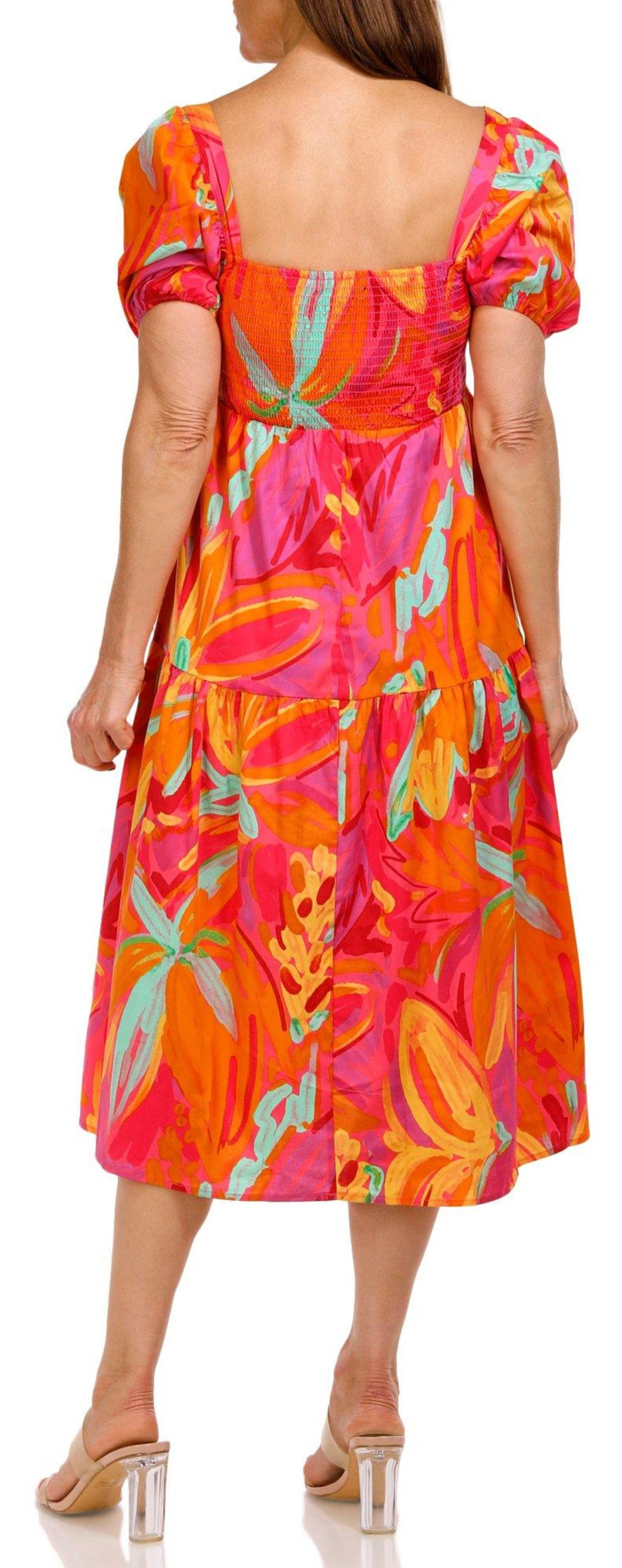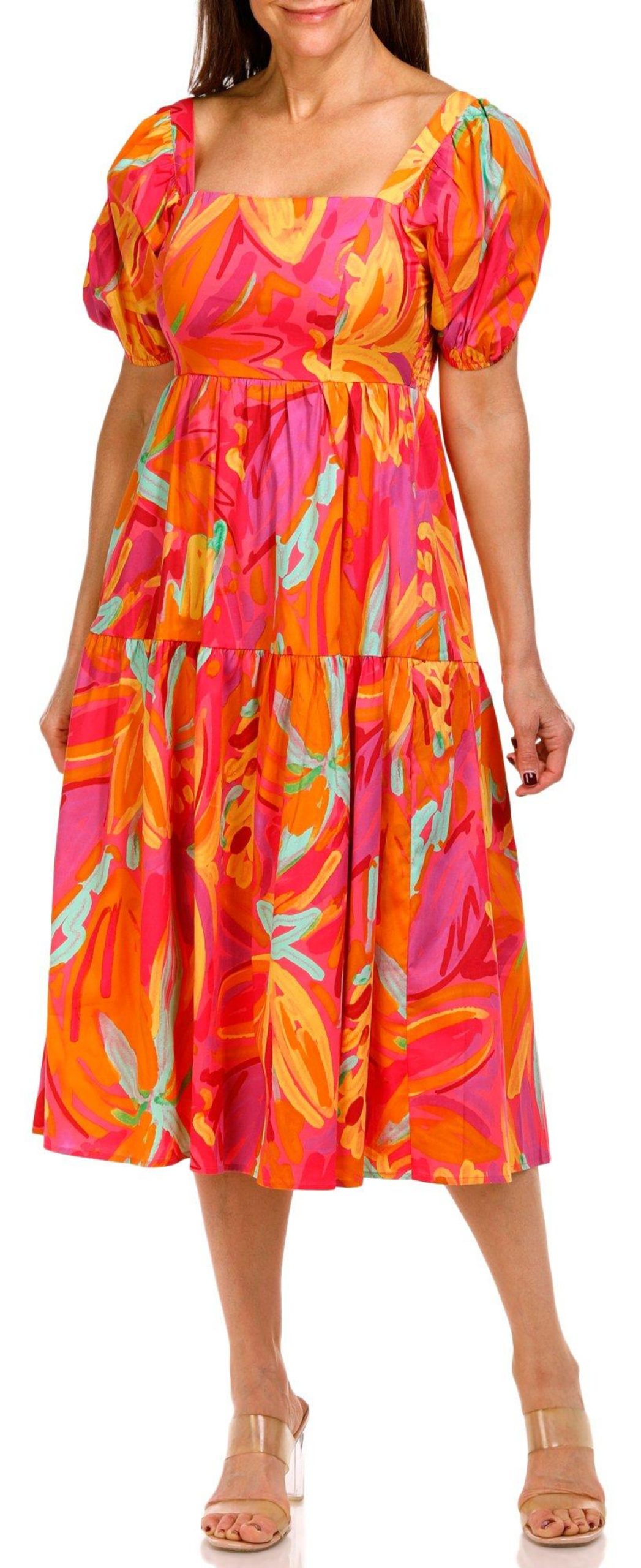 Add a touch of elegance to your wardrobe with our Women’s Puffer Sleeve Tiered Midi Dress. Made from a comfortable blend of cotton and spandex, this dress features a stylish print, a classic square neckline, and a charming tiered skirt. The short puffer sleeves add a playful touch, making this dress perfect for any occasion. Embrace both style and comfort with this versatile piece.