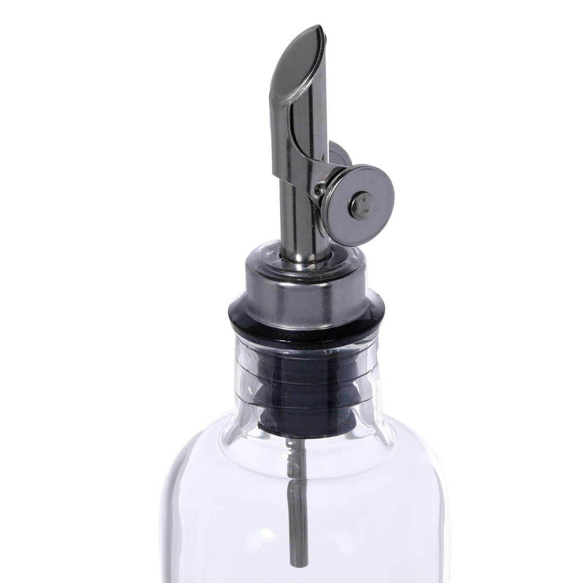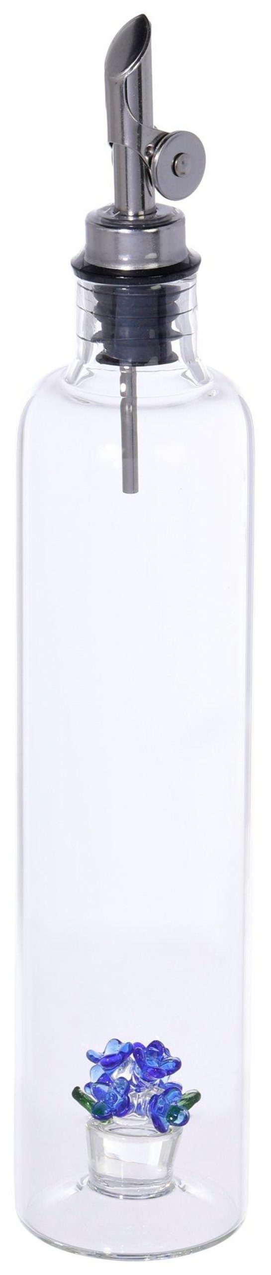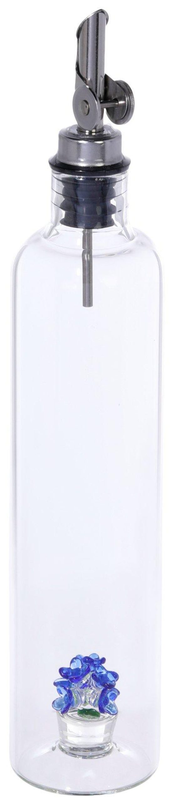 Enjoy an easy and hassle free pouring experience with the 17 oz Glass Oil & Vinegar Bottle! Featuring a silver spout and inner glass bouquet detail, this chic kitchen gadget is built to ventilate easy pouring over salads, pastas, sandwiches, and more. BPA Free.