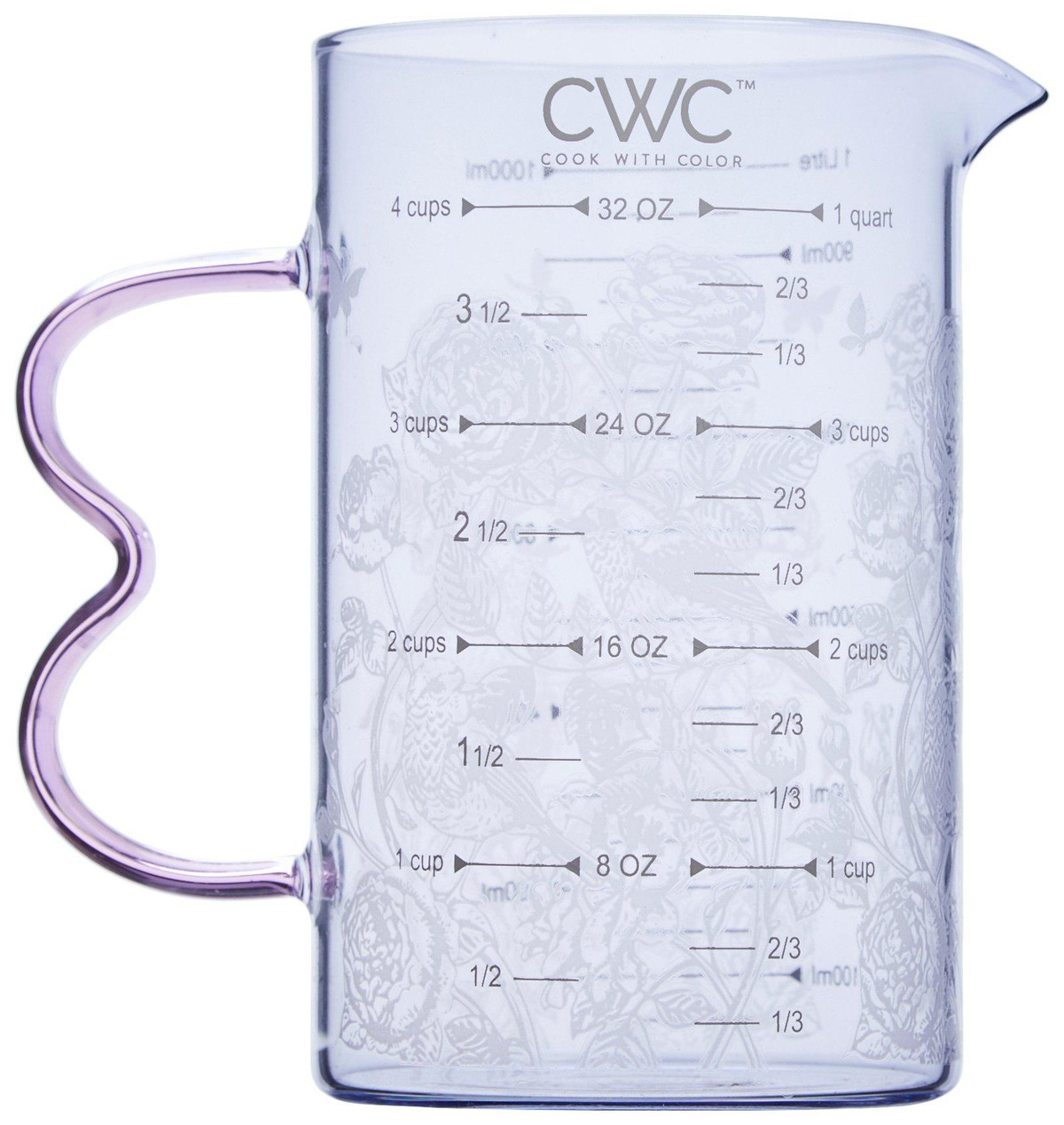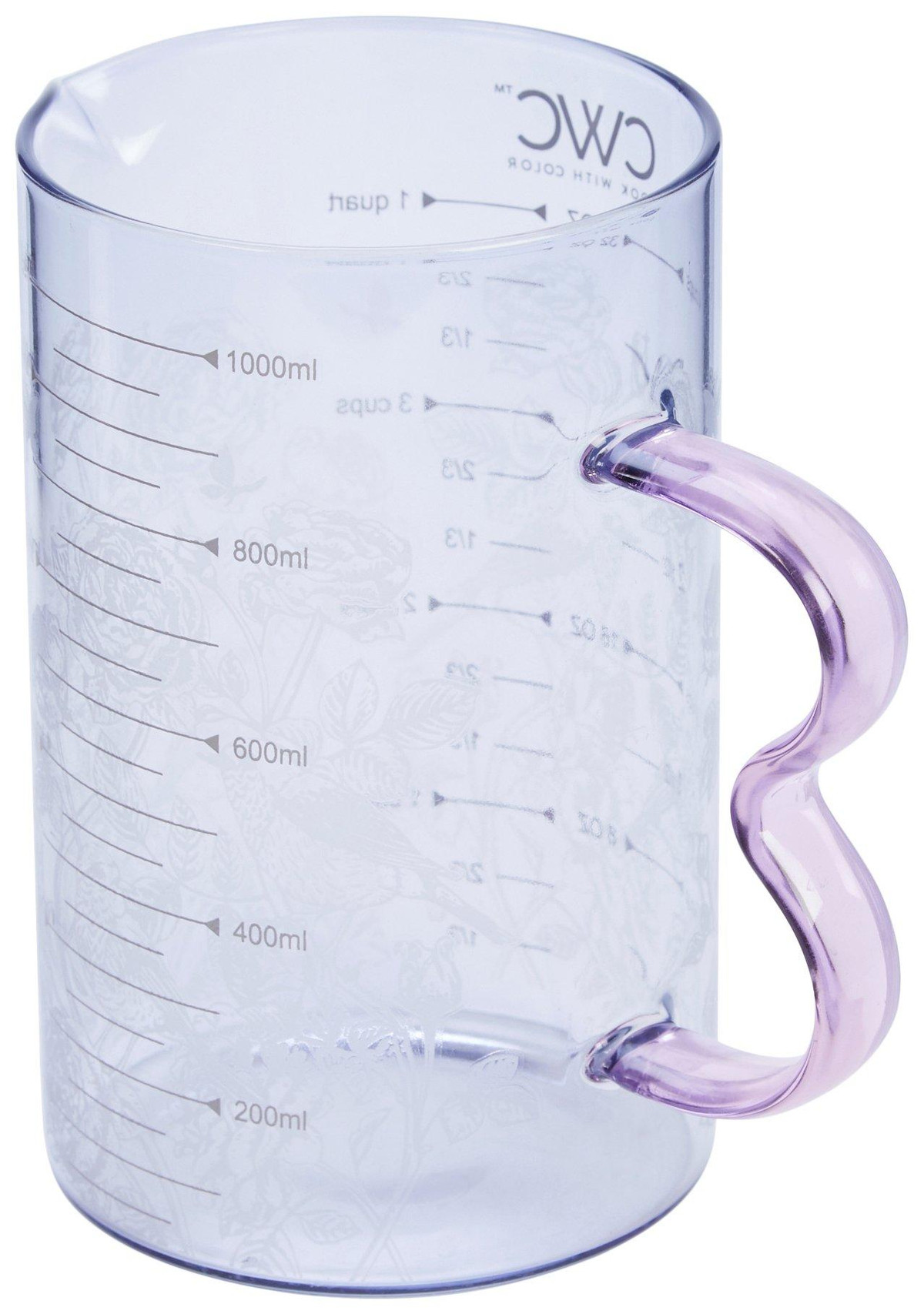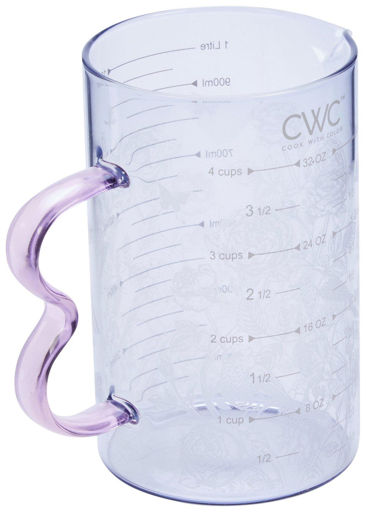 Add elegance to your kitchen with this 33 oz Glass Measuring Cup featuring a beautiful rose garden design. Complete with a spout and handle for easy pouring, it blends function and floral charm.