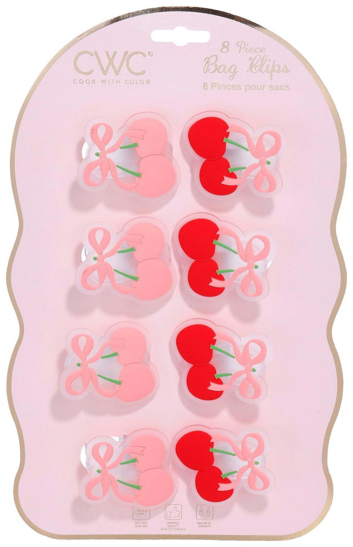 Add a pop of fun to your kitchen with this 8-pack of Cherry Bag Clips! Made of durable PVC, each clip features a cute cherry shape that is perfect for sealing snack bags and adding a fruity flair to your pantry or fridge.