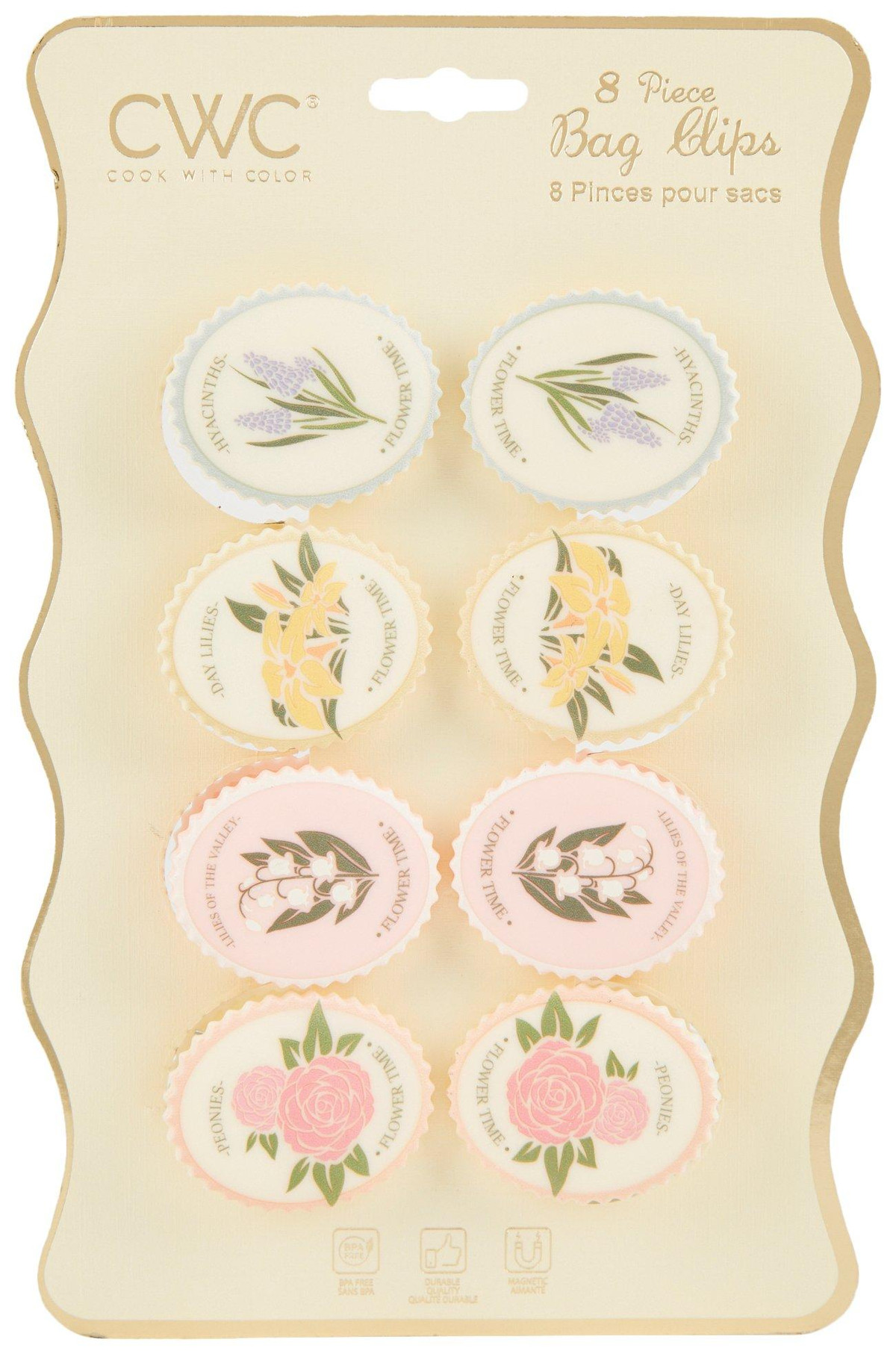 Add a charming touch to your kitchen with this 8-pack of Floral Magnetic Chip Clips. Each oval-shaped clip features scalloped edges, magnetic backing for fridge storage, and four unique floral designs. Perfect for sealing snack bags while bringing a whimsical, decorative flair to your pantry or refrigerator.