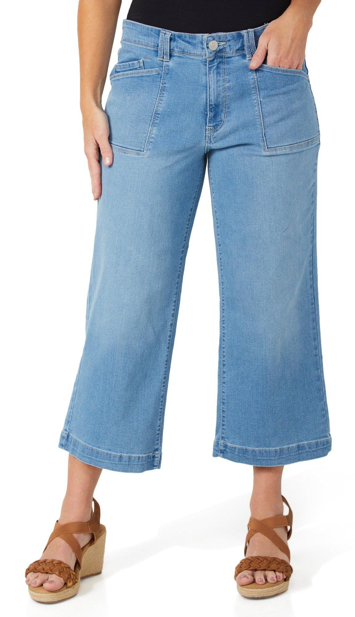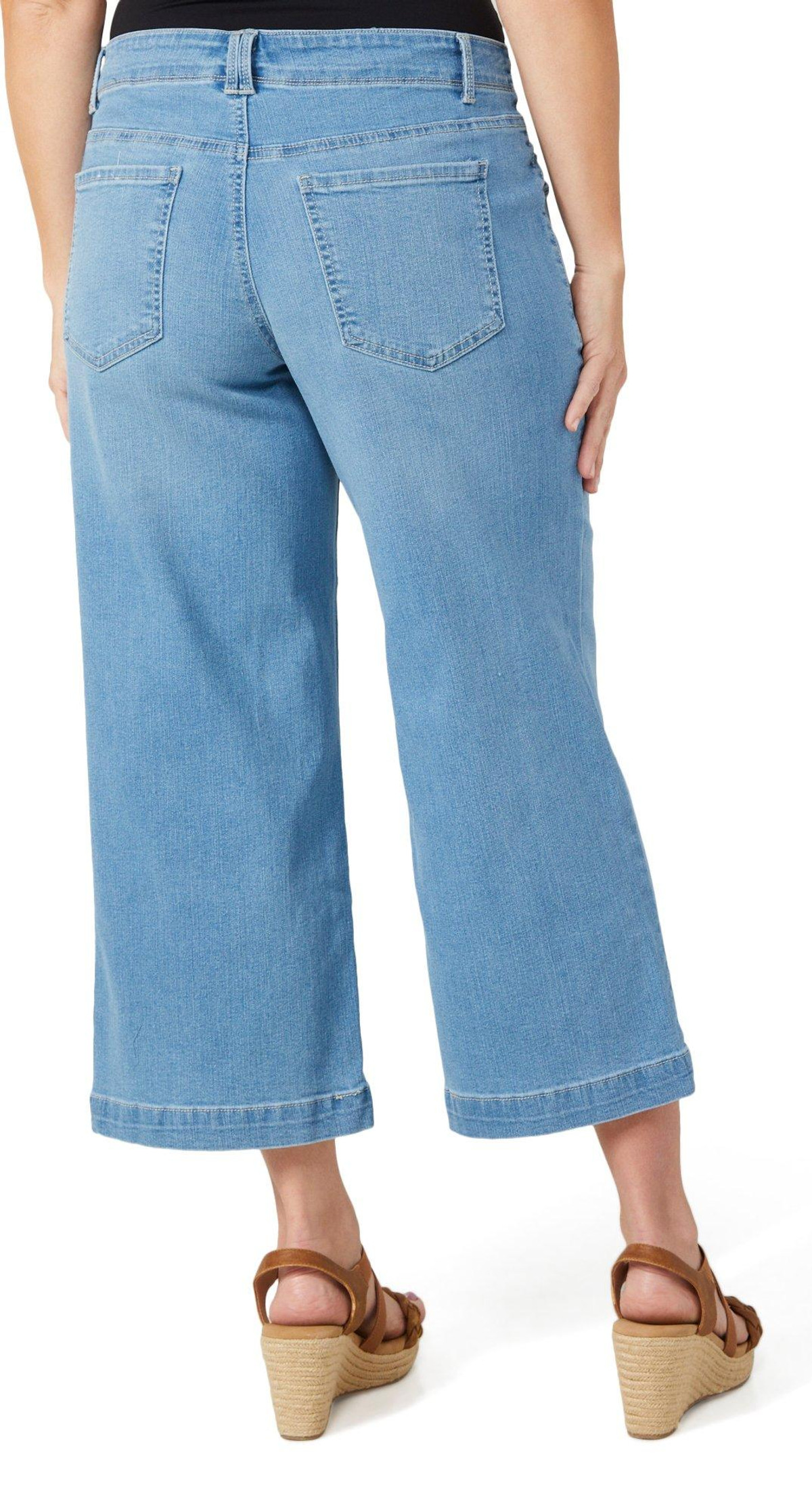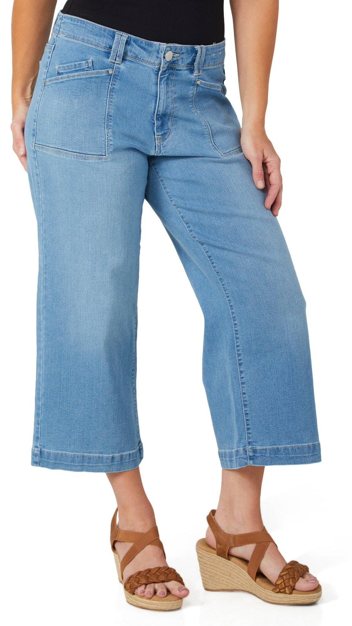 Breeze through your day in effortless style with these wide leg denim capris. Designed with a flattering mid rise and a chic cropped cut, they offer a relaxed yet polished look perfect for warm-weather adventures. The wide leg adds a modern twist, making them your go to for comfort and cool, casual flair.