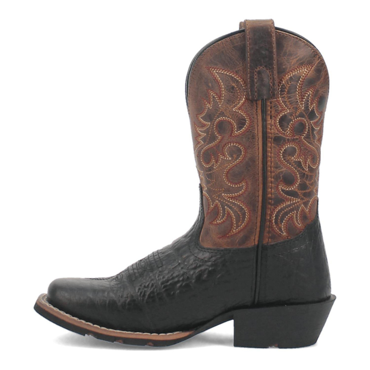 The stylish Little River boot is constructed with durable, two-toned leather. Features authentic western stitching and a broad square toe. A Comfort Cushion insole adds comfort, while the rubber outsole makes it easy for running and playing.