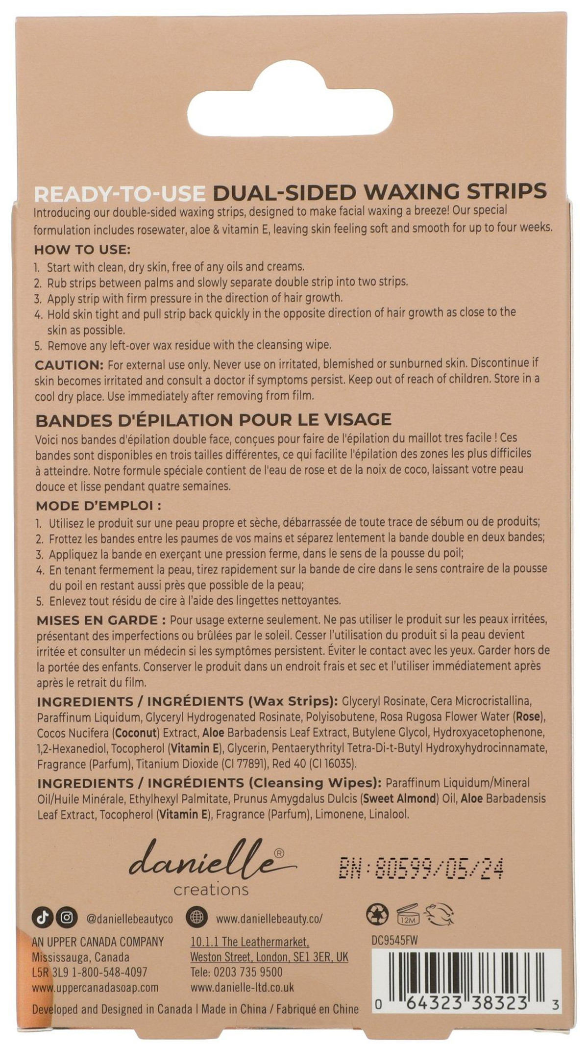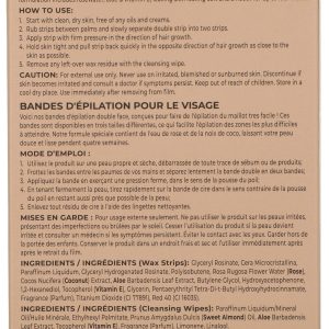 Introducing our 24 Pc ready-to-use double-sided waxing strips, designed to make facial waxing a breeze! Our special formulation includes Rose Water, Aloe and Vitamin E, leaving skin feeling soft and smooth for up to four weeks.