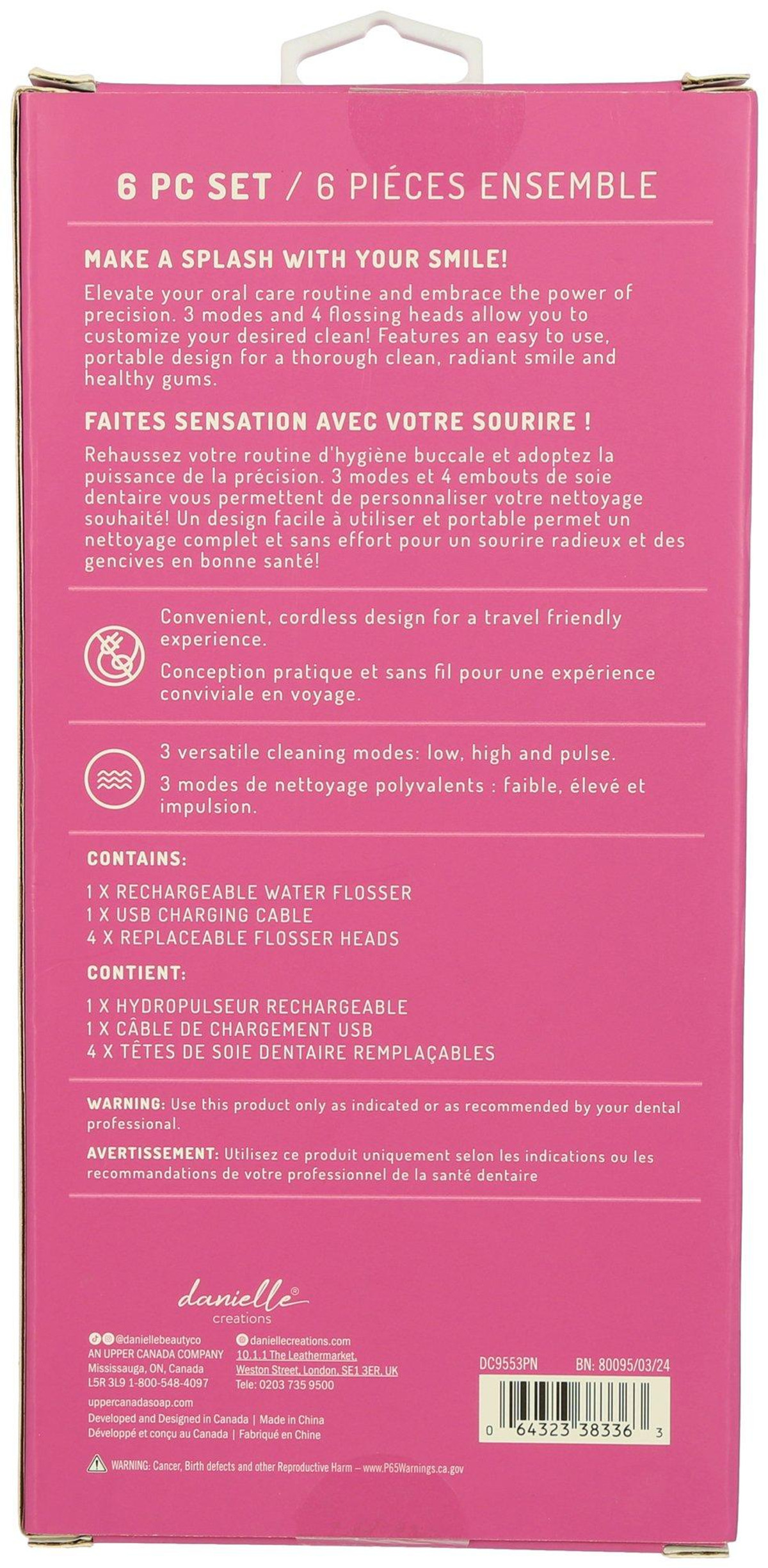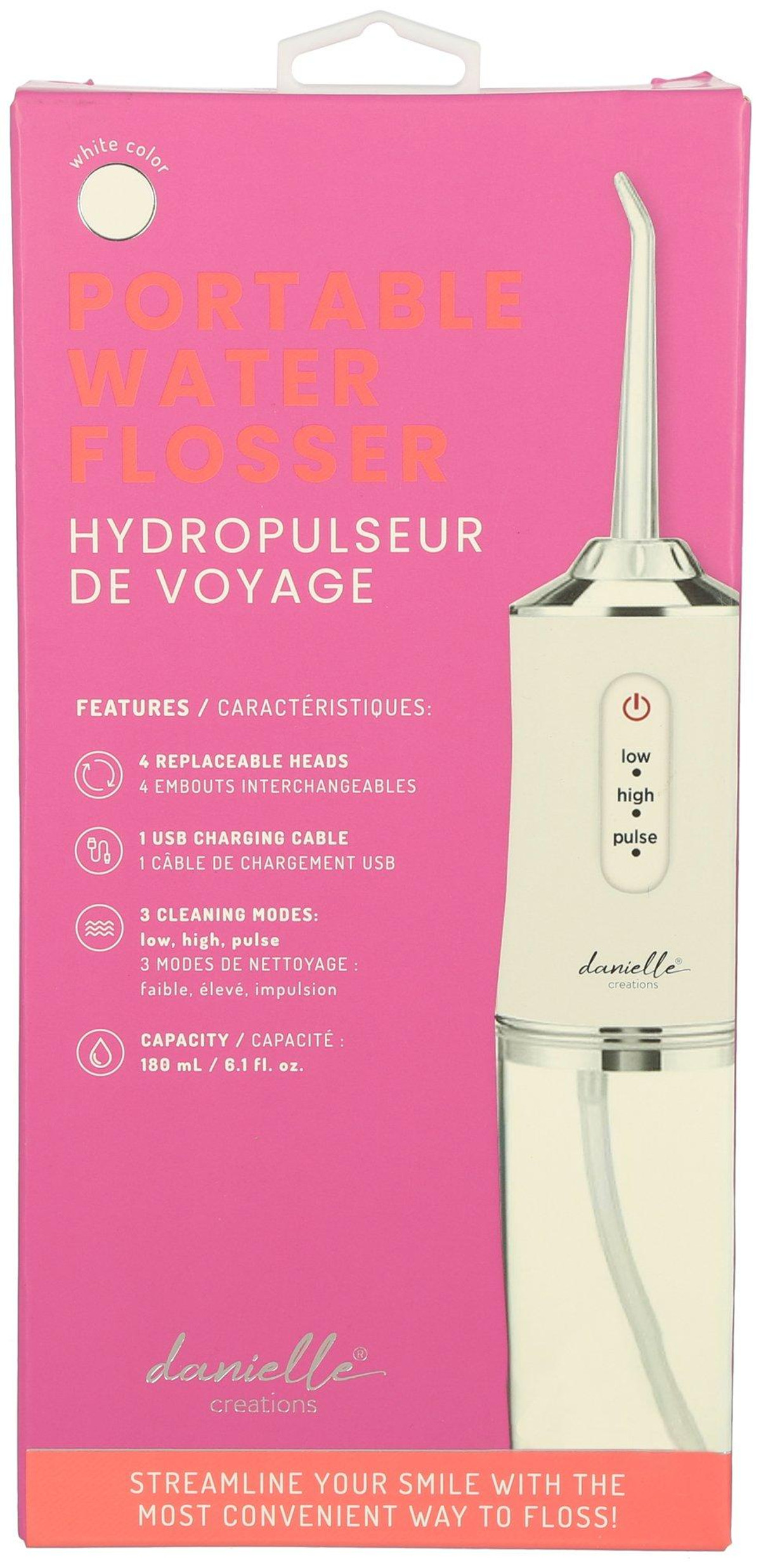 Streamline your smile with the most convenient way to floss! This Portable Water Flosser Set features 4 replaceable heads, 1 USB charging cables, 3 cleaning modes, and a 6 oz fluid capacity. Convenient cordless design makes this great for traveling.